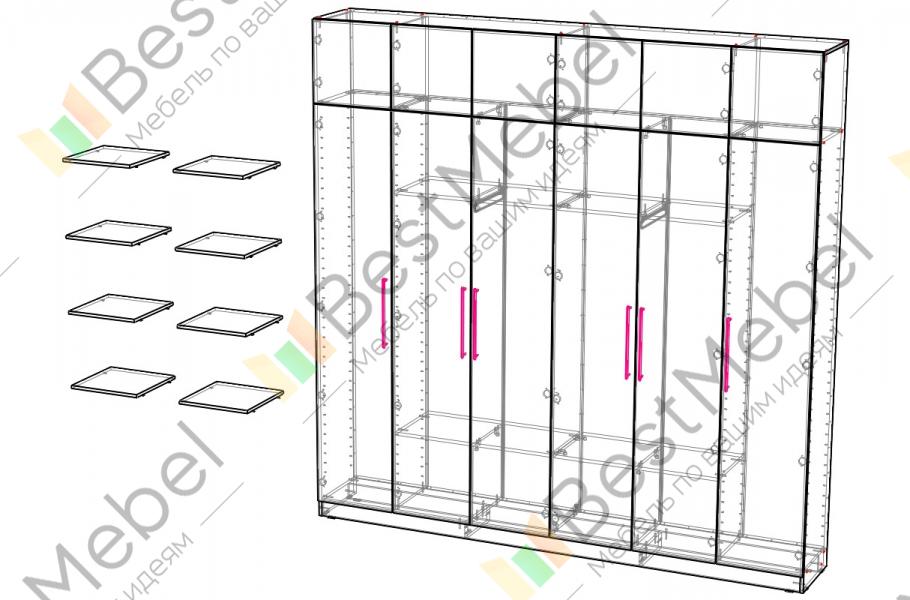 Заказ №1086085Заказывал шкаф по индивидуальный размерам. И некоторым моим доработкам. Менеджер быстро нарисовал проект согласовали. Выглядит очень дорого. Очень быстрое производство и доставка. 1 раз вижу, чтобы изготовили все по моим размерам за 3 дня!!и привезли за неделю . Шикарный сервис. Единственное пожелание на дверях использовать одинаковые петли, так как по инструкции не возможно понять какие петли куда крепить. В остальном сборка простая, собирал сам.