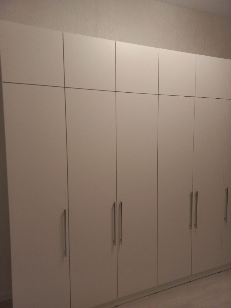 Шкаф покупали в прошлом году. Оформили в мебельном магазине лично. Мы внесли свои коррективы. Все ок. Когда доставили обнаружили, что положили разные ручки для дверей. Попросили заменить. Привезли на следующий день, но снова не такие. Решили уже забыть. (Брючницу на фото уже докупали сами)