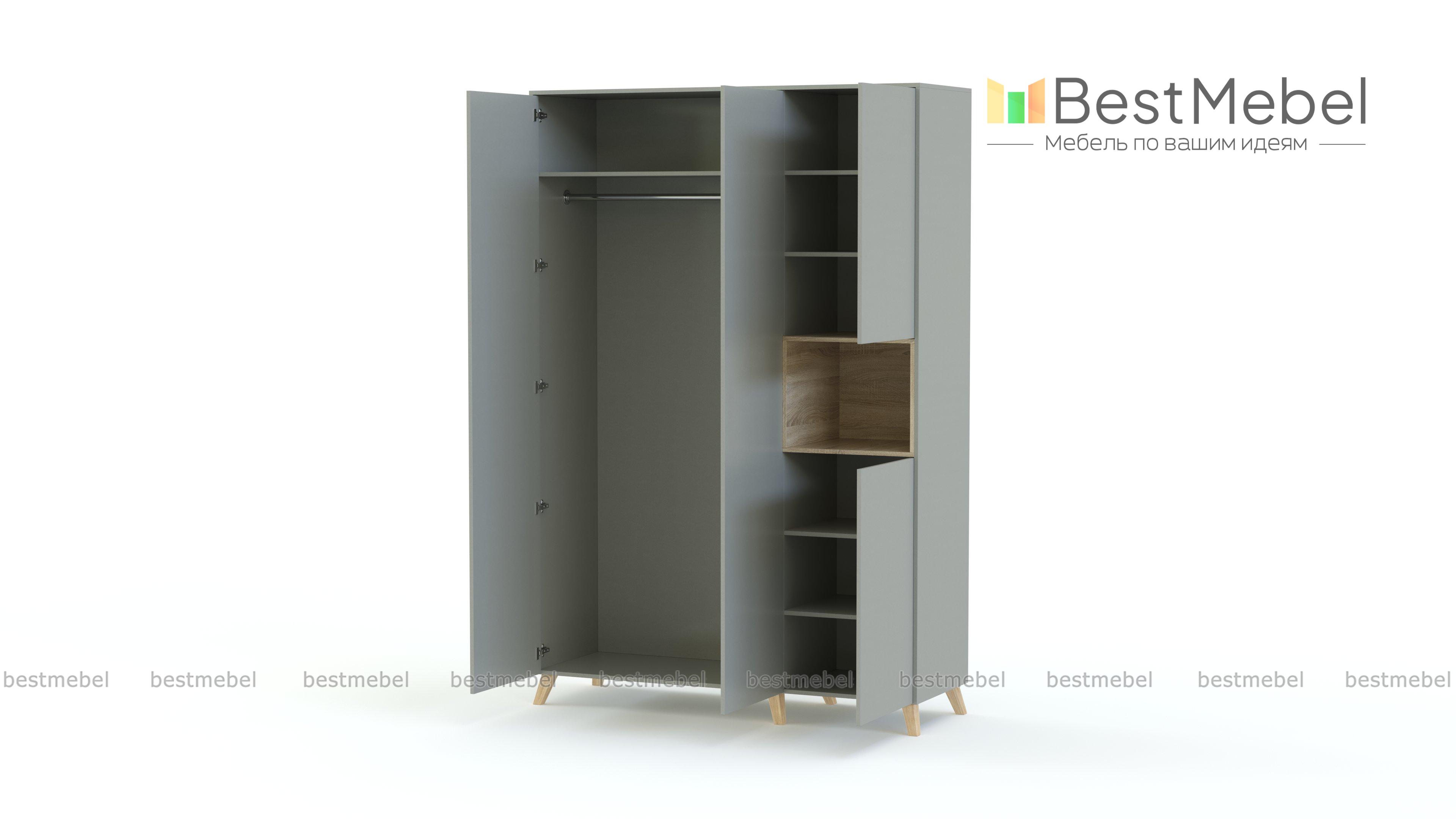 Шкаф распашной Пенелопа 2 BMS представлен в базовом светлом оттенке с природными акцентами. В двухдверном отделении слева установлены штанга для одежды и полка, а за дверцами справа скрыты бельевые полки. Особенную выразительность дизайну в лаконичном скандинавском стиле придает большая, выделенная имитацией дерева ниша под книги или декор. Купить шкаф распашной Пенелопа 2 BMS в необходимом размере и оттенке из каталога вы сможете в нашем интернет-магазине.