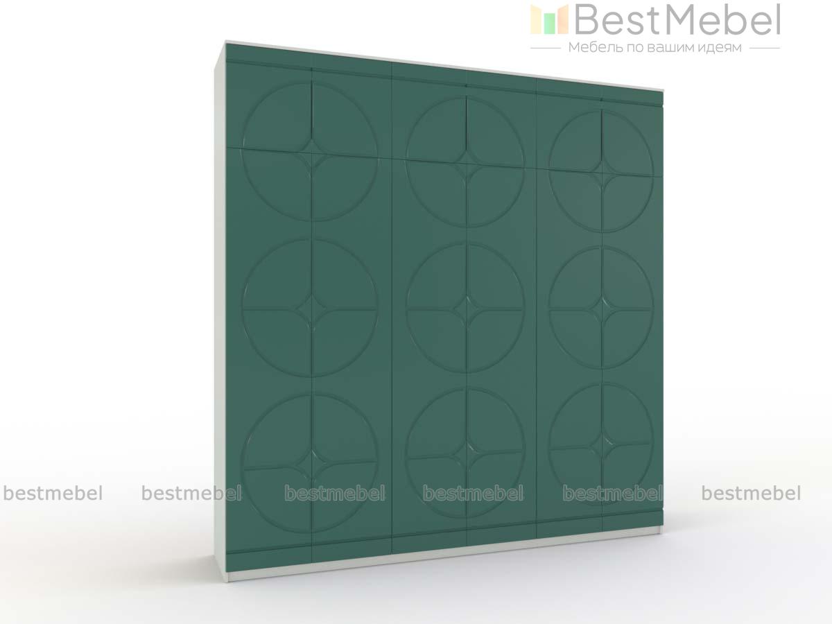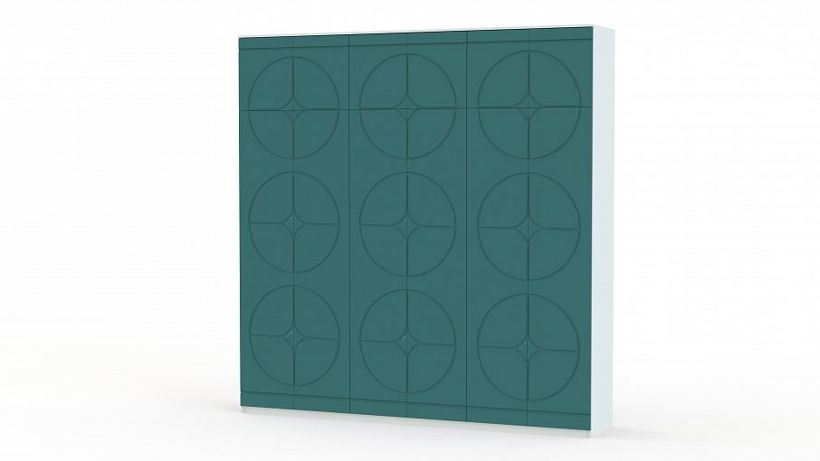 Шкаф распашной Раунд BMS – крупногабаритная модель для поклонников смелых современных дизайнов. Шкаф гармонично впишется в интерьер просторных помещений и компактно разместит предметы гардероба и постельные принадлежности, позволяя сэкономить на лишней мебели. В главный предмет меблировки модель превращает яркий изумрудно-зеленый фасад с оригинальным фрезерованным орнаментом. Купить шкаф распашной Раунд BMS вы сможете в нашем интернет-магазине с учетом оптимальных параметров.