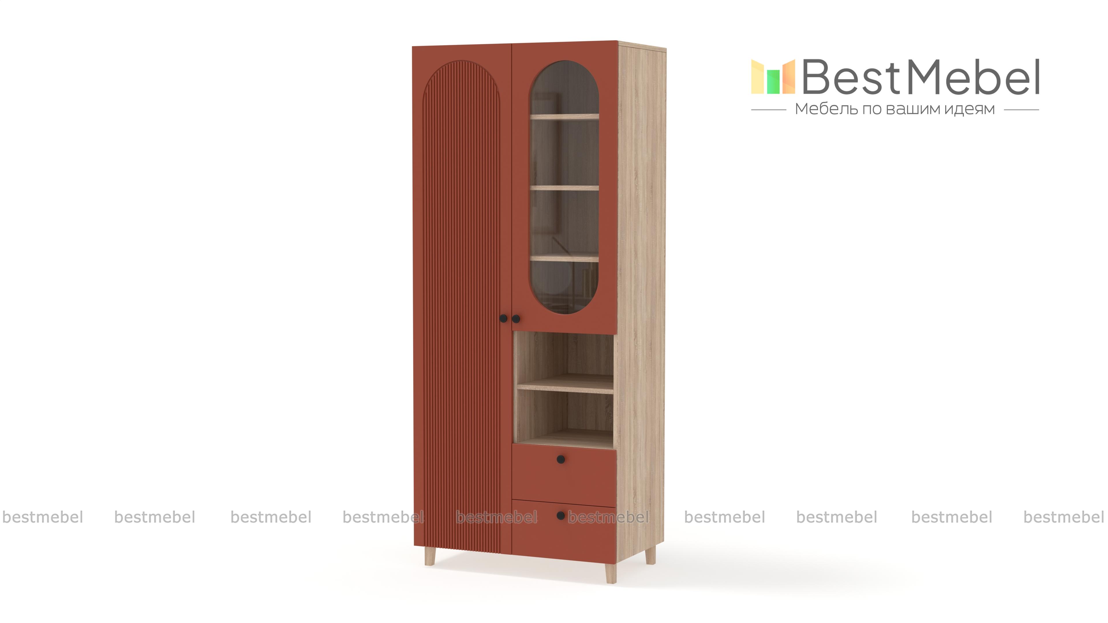 Шкаф распашной Рене 5 BMS станет не только местом хранения вещей, но и элементом дизайна современного дома. Конструкция шкафа хорошо продумана: закрытое отделение для одежды слева дополнено расположенными справа полками, ящиками и витриной. Внешне легкий благодаря высоким ножкам, шкаф со стильным темным оформлением фасада украшен овальным вырезом и фрезеровкой. Купить шкаф распашной Рене 5 BMS вы сможете в нашем интернет-магазине с индивидуальным подбором цвета и габаритов.