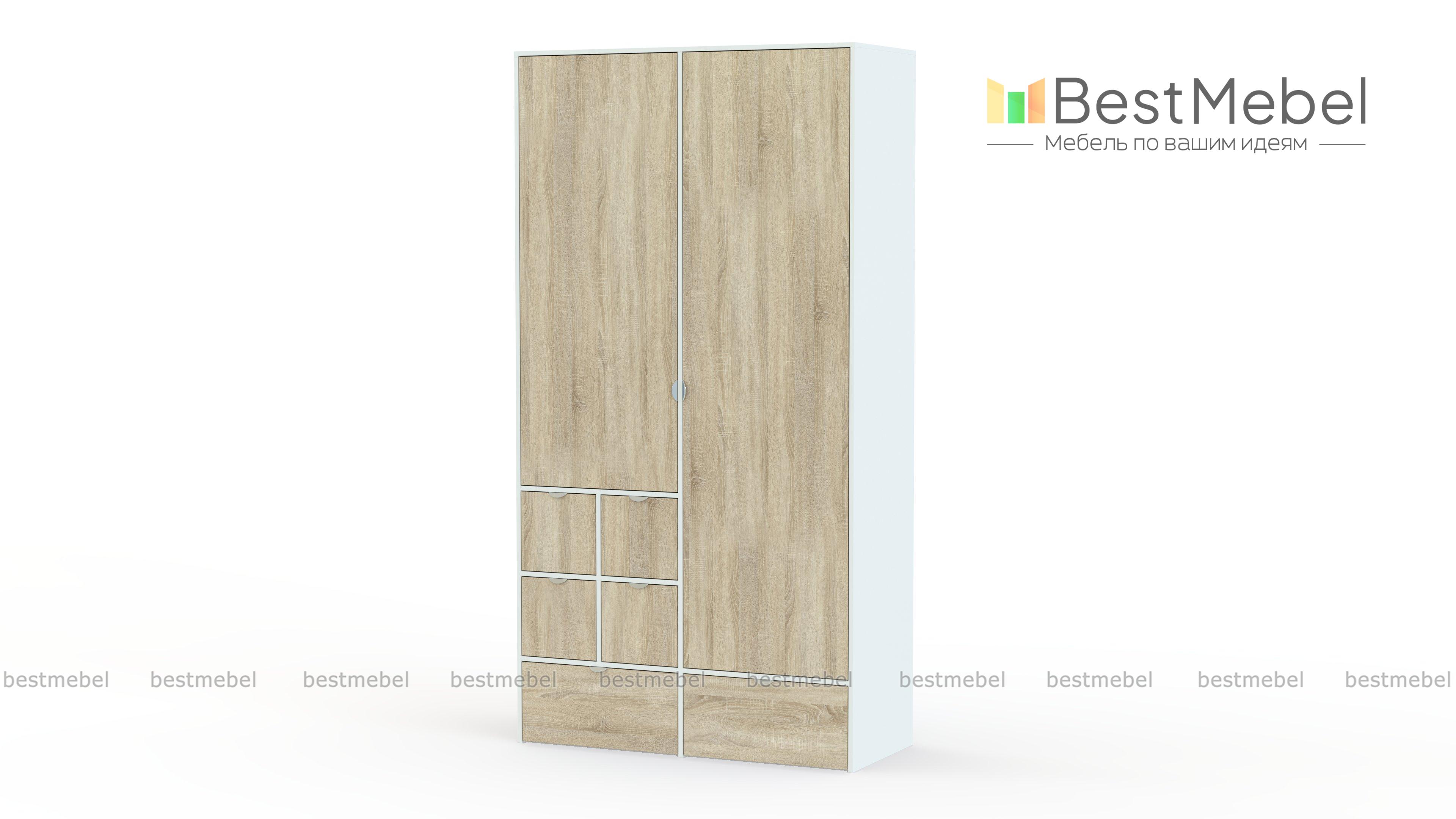 Шкаф распашной Веста 11 BMS поможет оптимизировать хранение одежды, домашнего текстиля, разнообразных бытовых вещей. Два распашных отделения со штангой и полками дополнены двумя большими и четырьмя малыми выдвижными ящиками, оснащенными торцевыми ручками. В отделке шкафа скомбинированы гладкие поверхности и с фактурой под натуральное дерево. Купить шкаф распашной Веста 11 BMS приглашаем в наш интернет-магазин с выбором фурнитуры и цветового решения.