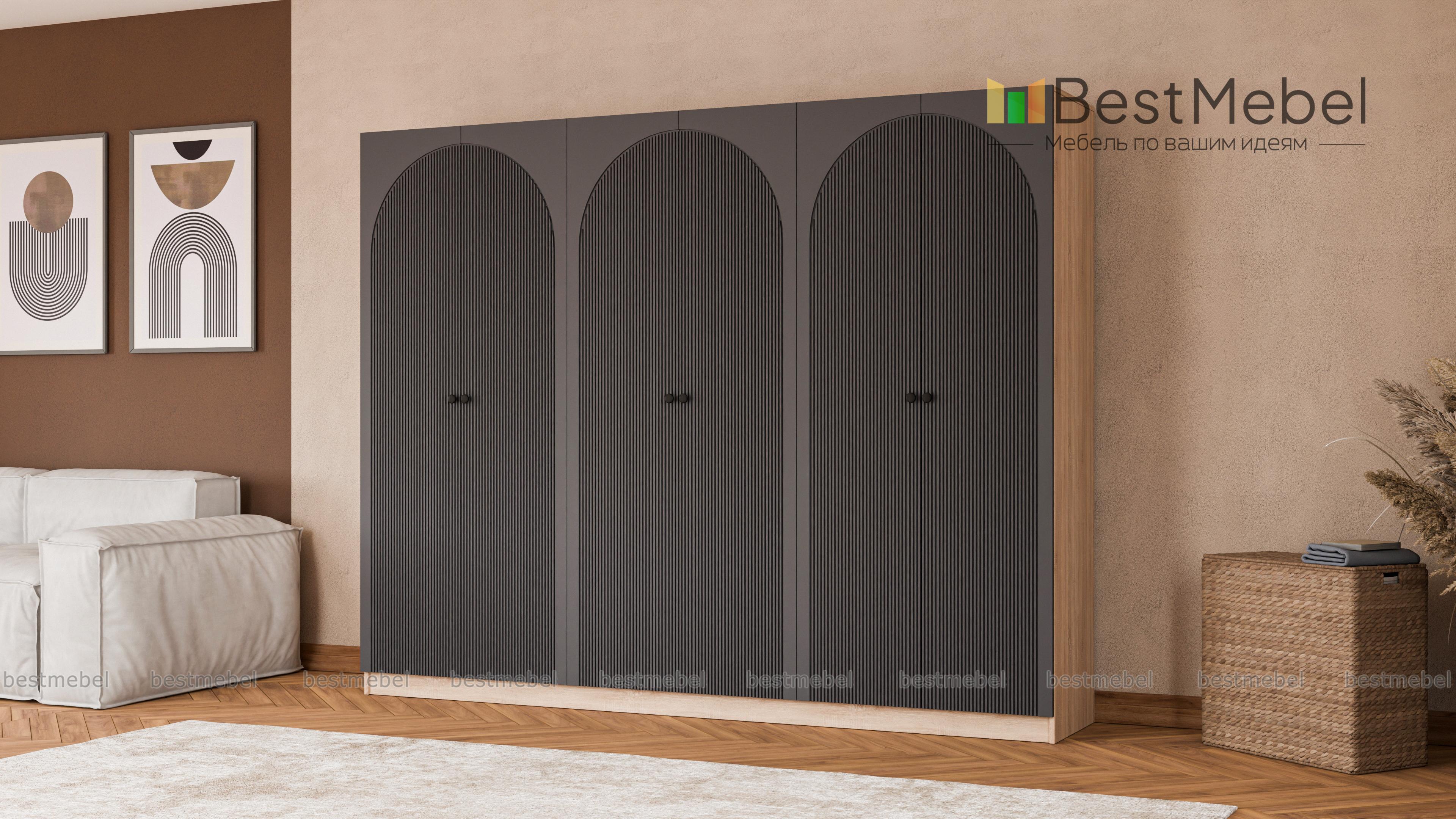 Шкаф распашной Вивьен 16 BMS — это удобный и вместительный гардероб с современным дизайном. Шестидверная конструкция включает в себя все необходимое для хранения одежды, обуви, аксессуаров и постельных принадлежностей. Фасады, изготовленные из МДФ с рифленым рисунком, стильно выглядят, просты в уходе и долговечны, корпус — ЛДСП высокого качества. Купить шкаф распашной Вивьен 16 BMS с выбором размеров, цвета и компоновки вы сможете недорого в нашем интернет-магазине.