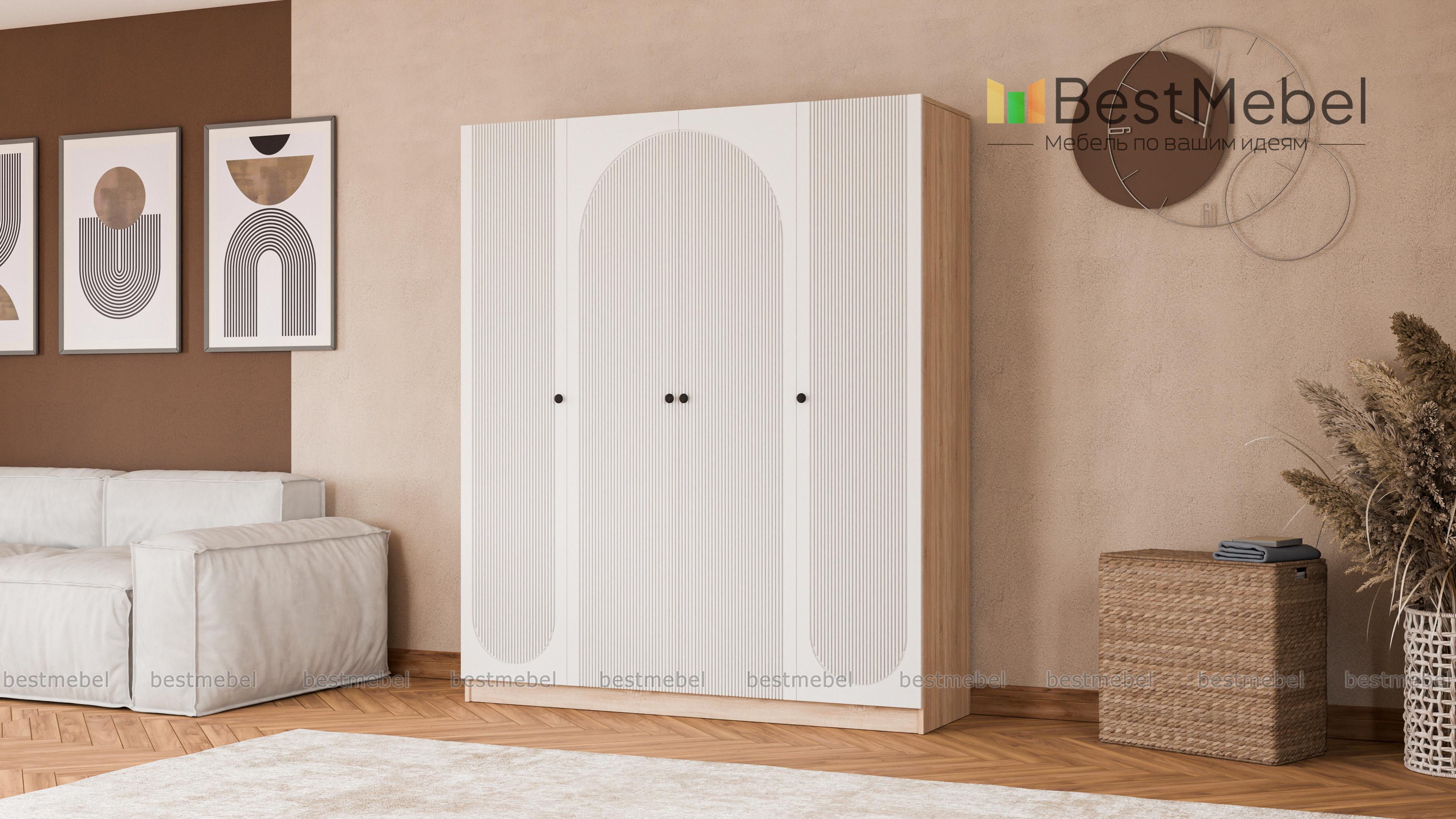Шкаф распашной Вивьен 9 BMS — современная модель со стильной отделкой фасада. Фактурный рисунок превращает четырехдверный гардероб в элемент дизайна спальни, комнаты ребенка или прихожей. Распашные дверцы с круглыми ручками открывают доступ к просторным внутренним отделениям, предназначенным для хранения одежды и обуви, аксессуаров и постельного белья. Купить шкаф распашной Вивьен 9 BMS вы сможете в нашем интернет-магазине, подобрав размеры, цвет и наполнение.