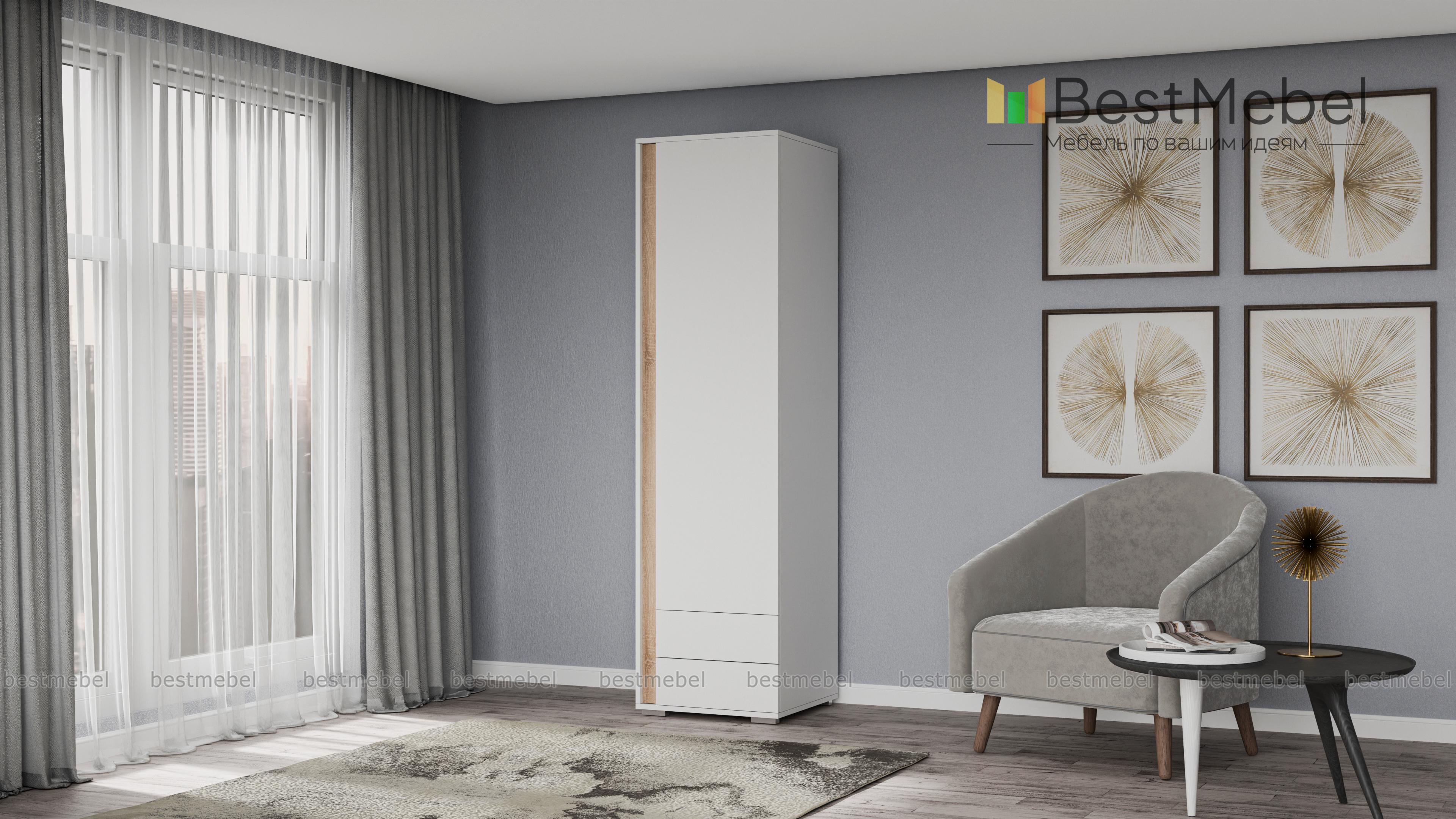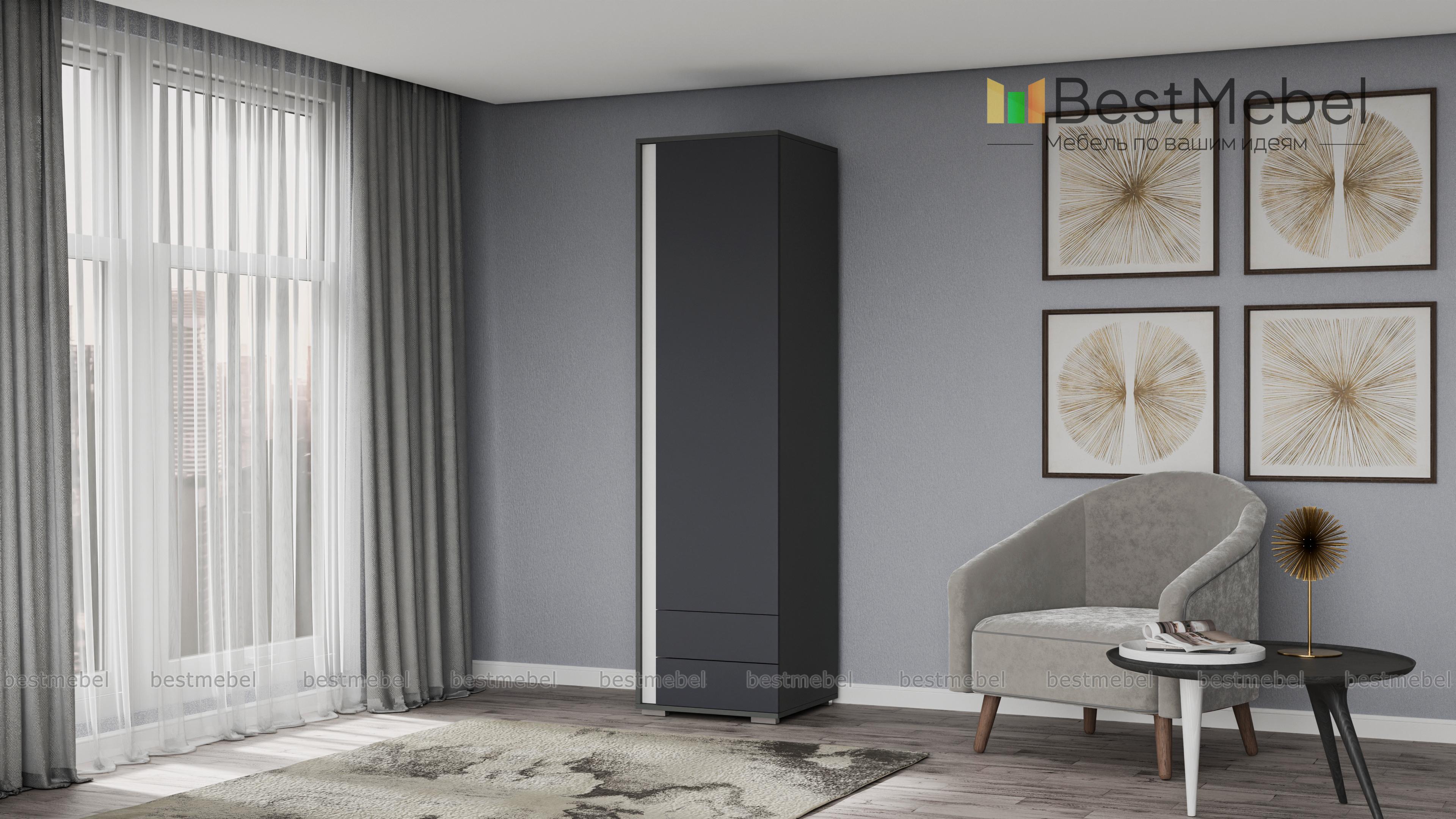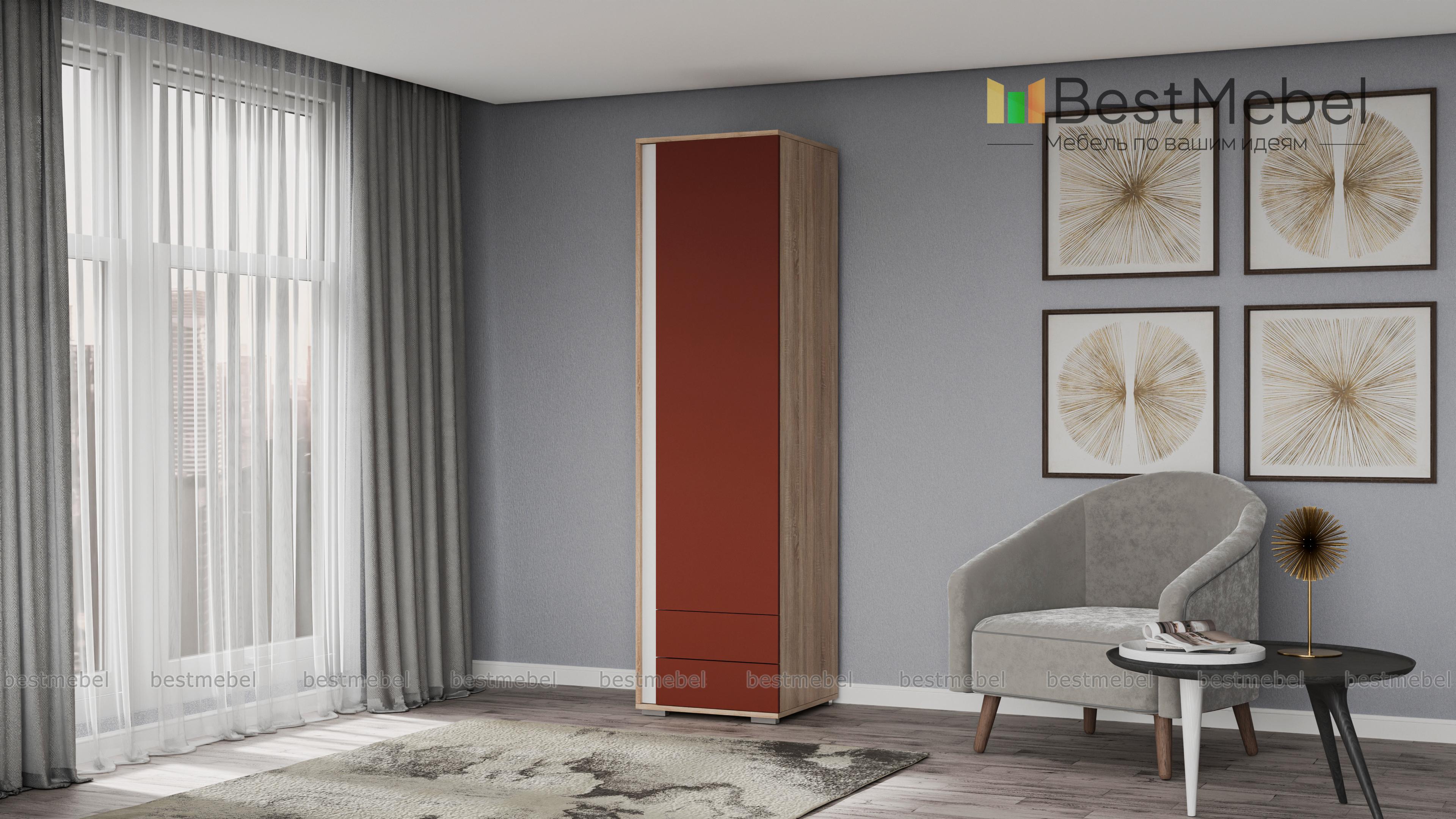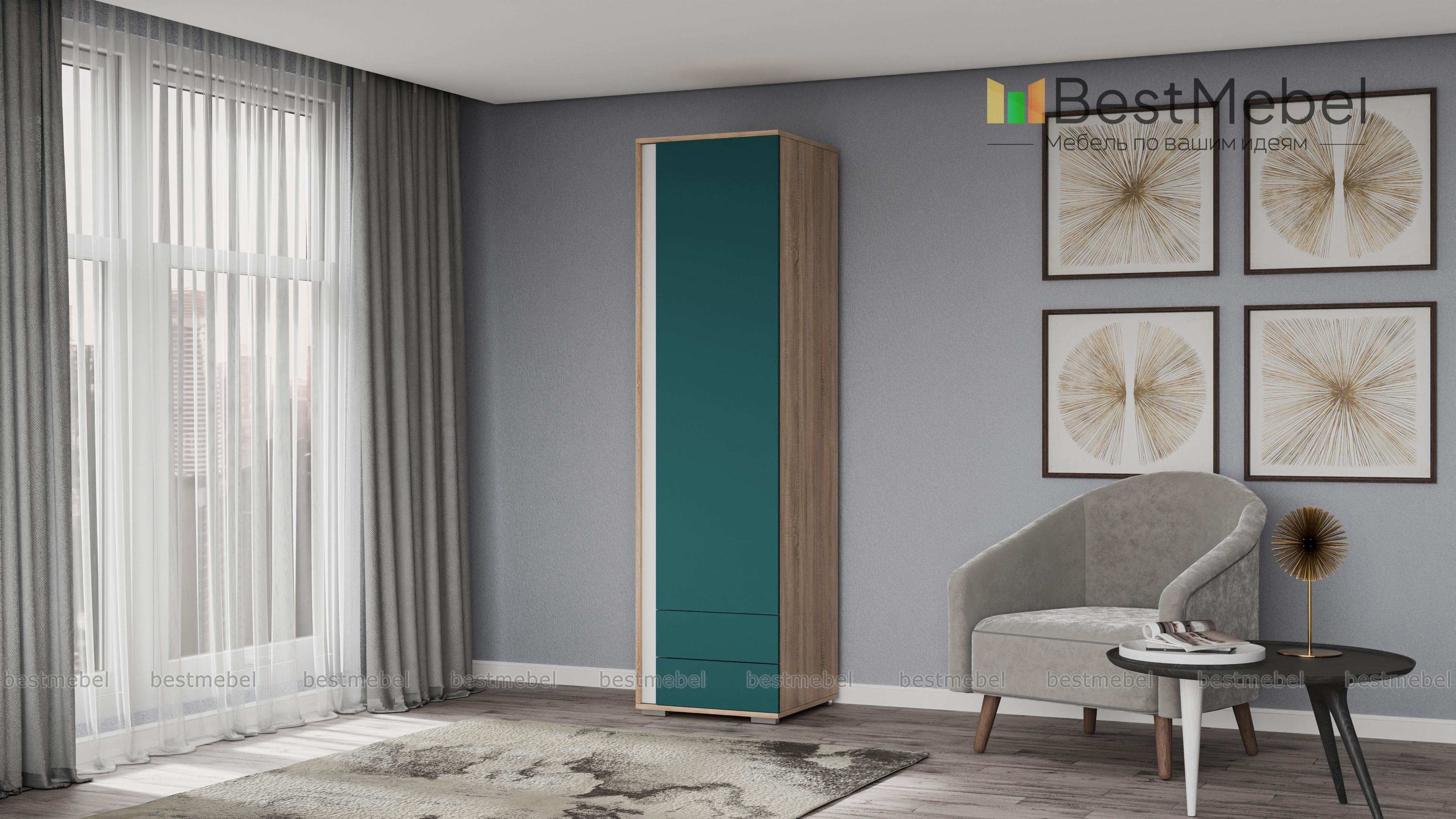 Шкаф Еннома BMS порадует поклонников креатива ультрасовременным графичным дизайном фасадов. Компактная, но вместительная однодверная модель станет отличным дополнением интерьера молодежной комнаты. В верхней части шкафа располагаются полки для хранения одежды или постельного белья, нижняя – два выдвижных ящика для мелких вещей. Дверцы без ручек открываются при помощи фрезеровки на кромке. Купить Шкаф Еннома BMS по демократичной цене приглашаем в наш интернет-магазин.