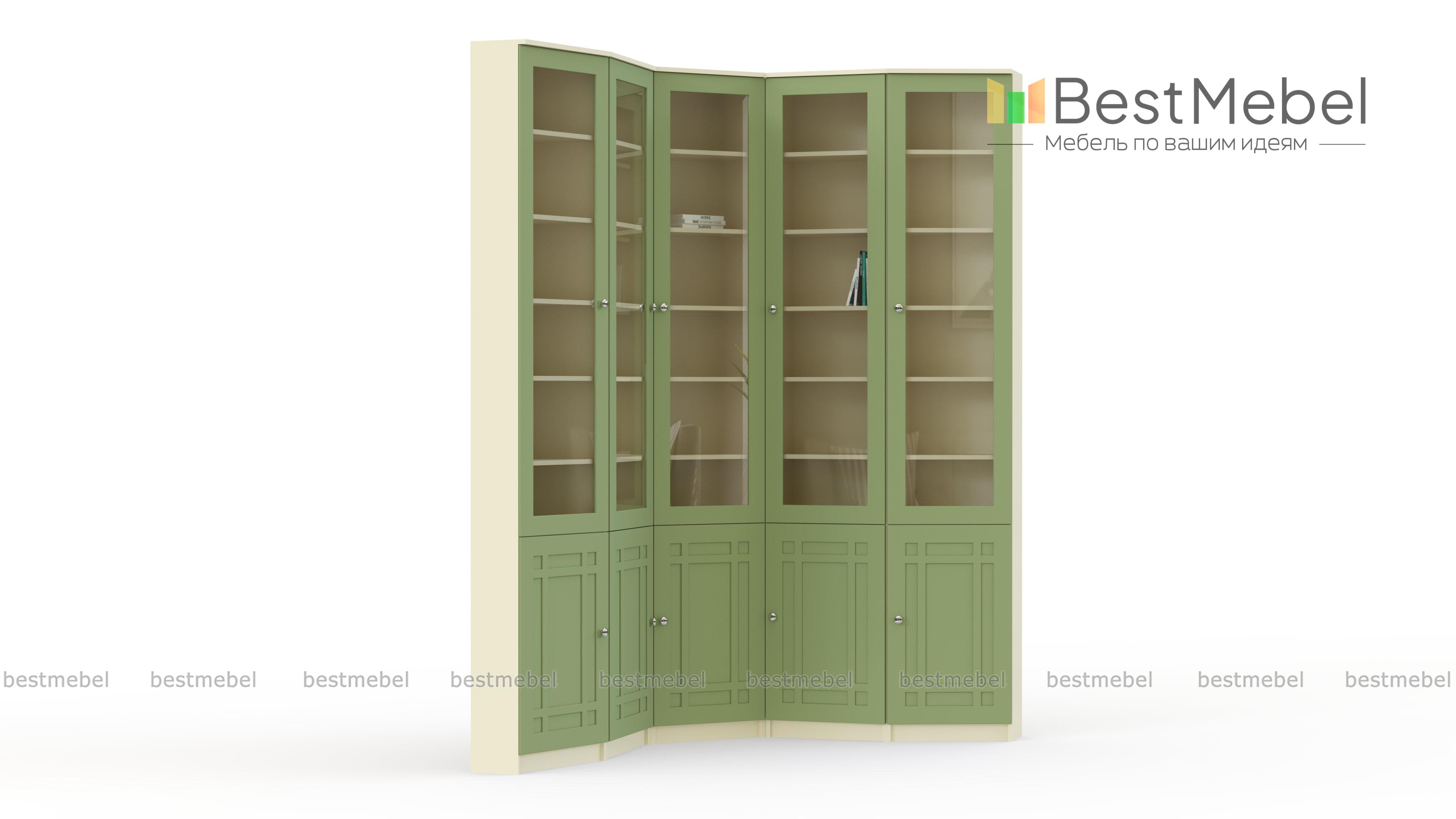 Шкаф угловой Локи 4 BMS гармонично впишется в классический интерьер гостиной или рабочего кабинета и бережно разместит домашнюю библиотеку. Шкафная группа включает в себя модуль в форме трапеции, два прямых и два скошенных элемента. В нижней части располагаются глухие отделения, а в верхней – застекленные просторные полки. Выполненная в матовых оттенках, композиция декорирована по фасаду фрезеровкой. Купить шкаф угловой Локи 4 BMS приглашаем в наш интернет-магазин по лучшей цене.