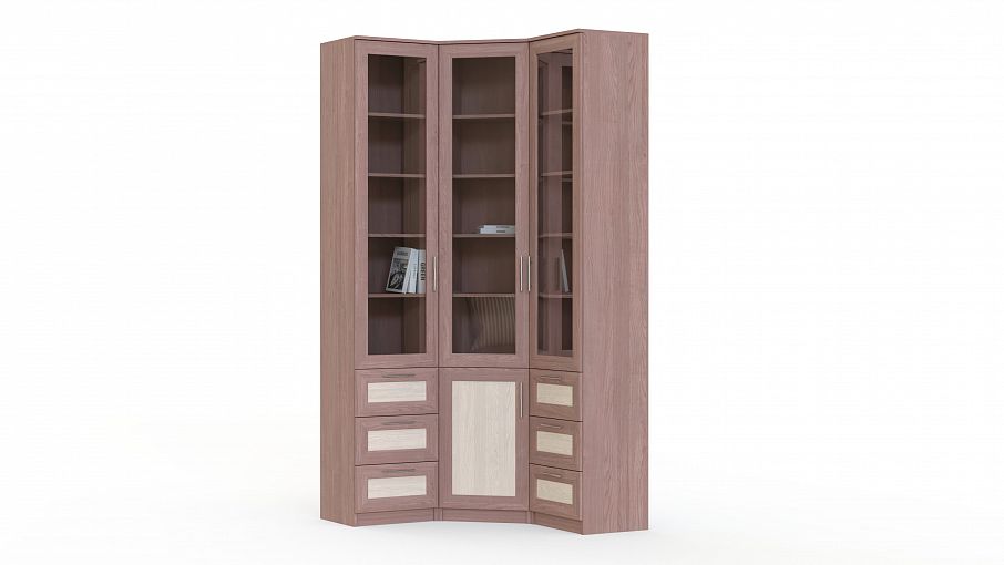 Шкаф угловой МБ-54 BMS будет гармонично смотреться в интерьере гостиной или рабочего кабинета. Комбинированная конструкция шкафа позволит разместить не только книги, но и документы, канцелярские принадлежности и прочие мелочи. Классическая модель с рамочными фасадами в древесных тонах оборудована тремя застекленными распашными отделениями, одним глухим и шестью выдвижными ящиками. Купить шкаф угловой МБ-54 BMS приглашаем в наш интернет-магазин, подобрав оптимальное цветовое решение.