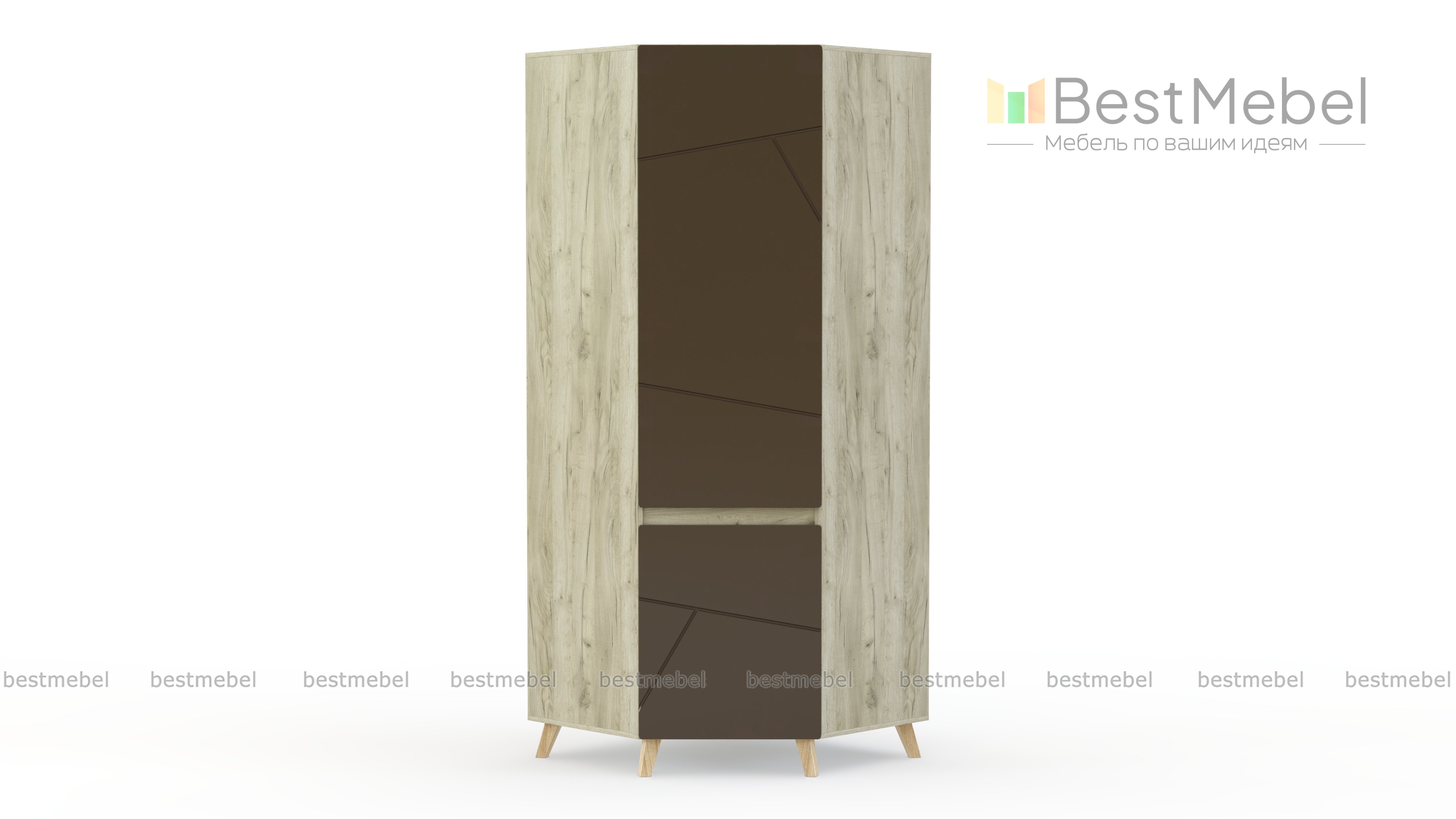 Угловой шкаф Олди BMS выполнен в форме трапеции, а необычным решением станут высокие скошенные опоры. Оборудованный двумя отделениями с распашными дверцами, шкаф поможет систематизировать хранение одежды, обуви и аксессуаров. Для создания современного дизайна использованы ламинированная плита крафтовых древесных тонов и цветные фасады с фрезеровкой. Купить угловой шкаф Олди BMS с изготовлением по индивидуальным размерам вы сможете в нашем интернет-магазине.