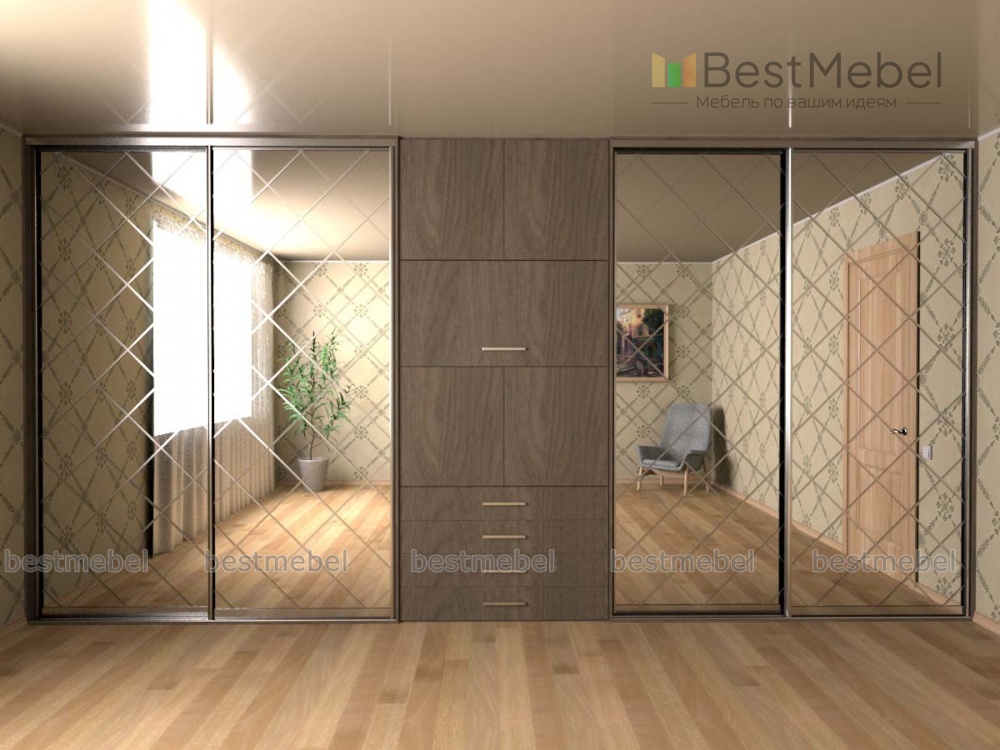 Шкаф-купе Империал BMS – это эффектный дизайн в сочетании с высокой функциональностью конструкции. Практичная встраиваемая модель включает в себя два раздвижных отделения с зеркальными фасадами с рисунком и центральную секцию в древесных тонах с выдвижными ящиками, распашными и откидными вверх дверцами. Комбинированный шкаф незаменим в интерьере гостиной, спальни или просторного холла для хранения предметов гардероба, домашнего текстиля, бытовых мелочей. Купить шкаф-купе Империал BMS по лучшей цене приглашаем в наш интернет-магазин.