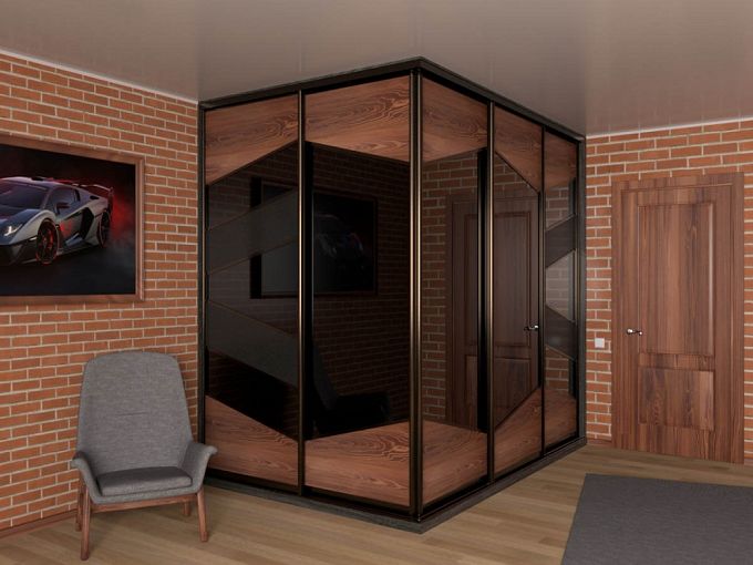 Шкаф-купе Лука Пример 26 BMS поможет оборудовать мини-гардеробную в интерьере современной спальни или прихожей. Крупногабаритная встроенная модель угловой формы оборудована расположенными с фронтальной и торцевой сторон раздвижными дверцами и отличается просторным внутренним отделением. Эффектные фасады шкафа выполнены в древесных тонах с геометричными вставками в контрастном глянце. Купить шкаф-купе Лука Пример 26 BMS приглашаем в наш интернет-магазин, подобрав оптимальное внутреннее наполнение.