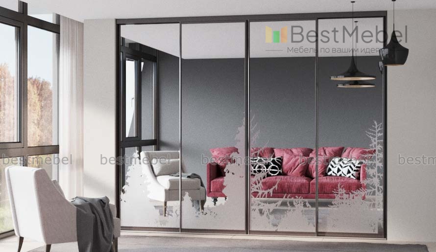 Шкаф-купе В-19 BMS с полностью зеркальными фасадами визуально расширит границы комнаты, а пескоструйный рисунок станет украшением интерьера гостиной или спальни. Конструкция, занимающая одну из стен, экономит полезную площадь за счет раздвижной конструкции и на редкость вместительна. Просторное внутреннее отделение с полками и штангами поможет организовать удобное хранение предметов гардероба и домашнего текстиля, дополнительно возможно установить выдвижные ящики. Купить шкаф-купе В-19 BMS приглашаем в наш интернет-магазин, подобрав оптимальные параметры.