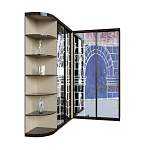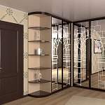 Угловой шкаф 133 BMS поможет не только компактно разместить большое количество вещей и эффективно задействовать пространство, но и станет украшением домашнего интерьера. Встроенная композиция из двух шкафов-купе и торцевого радиусного стеллажа выполнена в элегантном сочетании темных древесных поверхностей и зеркал с пескоструйным рисунком. Надежные в эксплуатации благодаря качественной системе направляющих, раздвижные дверцы экономят полезную площадь. Купить Угловой шкаф 133 BMS для современной спальни или прихожей вы сможете в нашем интернет-магазине.