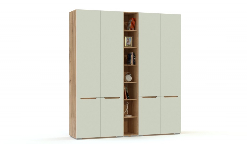 Спальня Анетт 1 BMS отличается актуальным лаконичным дизайном и выполнена в комбинации древесных тонов и белого. Продуманная модульная композиция включает в себя все необходимое для полноценного отдыха и хранения вещей. В комплект входят двуспальная кровать в мягкой обивке из экокожи песочного оттенка, прикроватные тумбы с выдвижными ящиками, распашные шкафы с отделениями для белья и одежды и высокий книжный стеллаж. Купить спальню Анетт 1 BMS вы сможете в нашем интернет-магазине, подобрав оптимальные параметры.