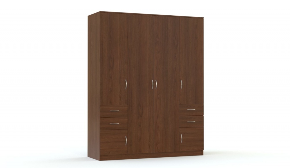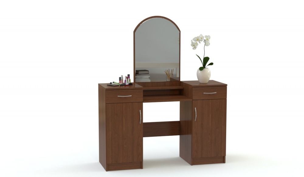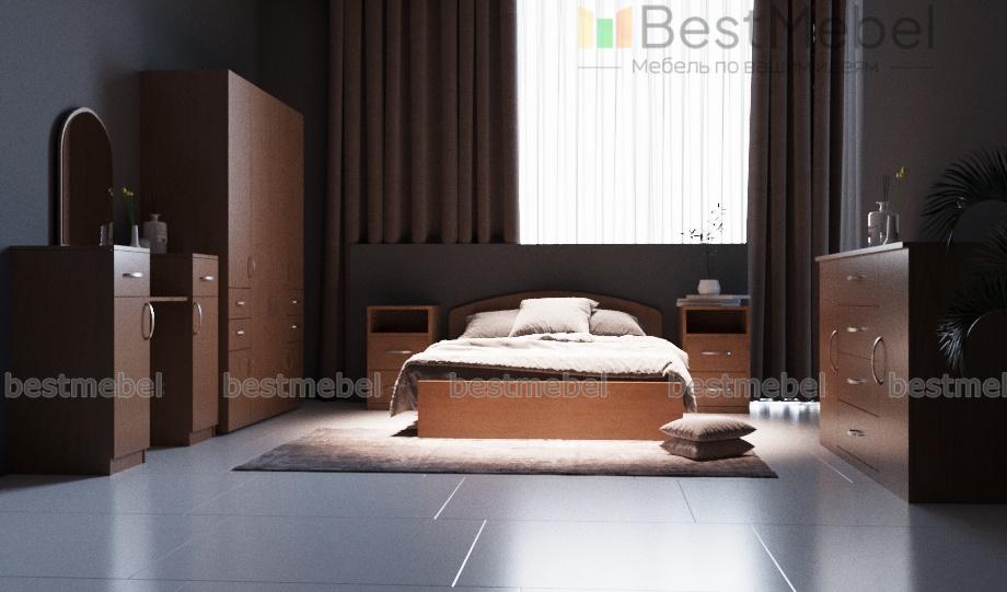 Аккуратная спальня Эстелла BMS сделает обстановку уютной, атмосферу спокойной, подарит полноценный отдых. В комплект входят все важные составляющие, без которых невозможно представить современную комнату, предназначенную для сна и отдыха. Широкая кровать на двоих, для которой предусмотрены тумбочки, солидный шкаф универсального применения, вместительный комод с выдвижными ящиками и двумя отделениями с дверцами. Особое внимание заслуживает элегантный туалетный столик с закрепленным на столешнице зеркалом. Сочетание прямых и плавно изогнутых линий, приятный оттенок натурального ореха никогда не навеют скуку. Обладатель изумительного комплекта сможет максимально просто обустроить комнату, наполнив ее стилем и красотой. Купить качественную и недорогую спальню Эстелла BMS предлагаем в нашем интернет-магазине.