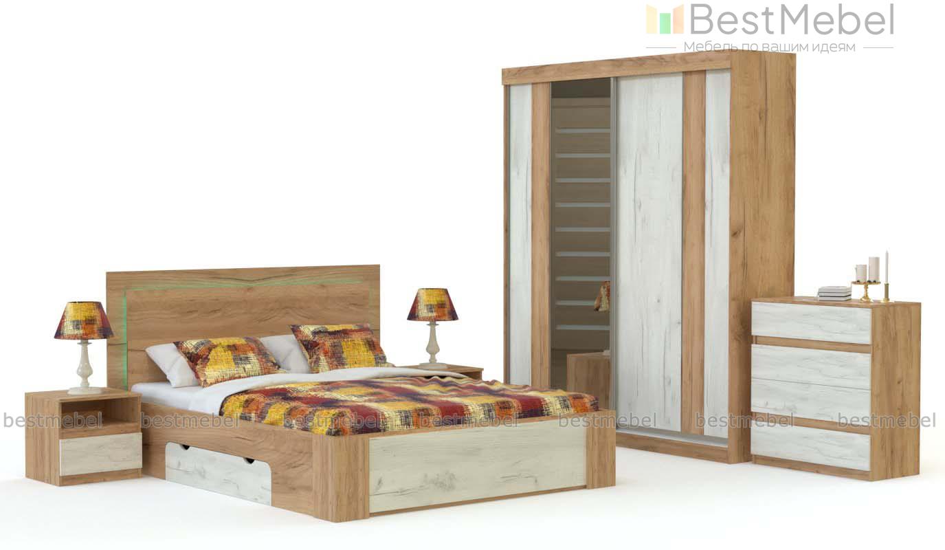 Изящный стильный спальный гарнитур в светло – бежевой гамме HEOS 2-203 BMS укомплектован всем необходимым для комфортного отдыха и удобного размещения одежды, предметов декора и мелочей. Практичный шкаф-купе с зеркалом разделен внутри на несколько отделений, в комоде имеются четыре выдвижных ящика, кровать дополнена ящиком для белья, а поверхность тумбочек станет отличным столиком для ночной лампы. Изголовье кровати декорировано светодиодной лентой.