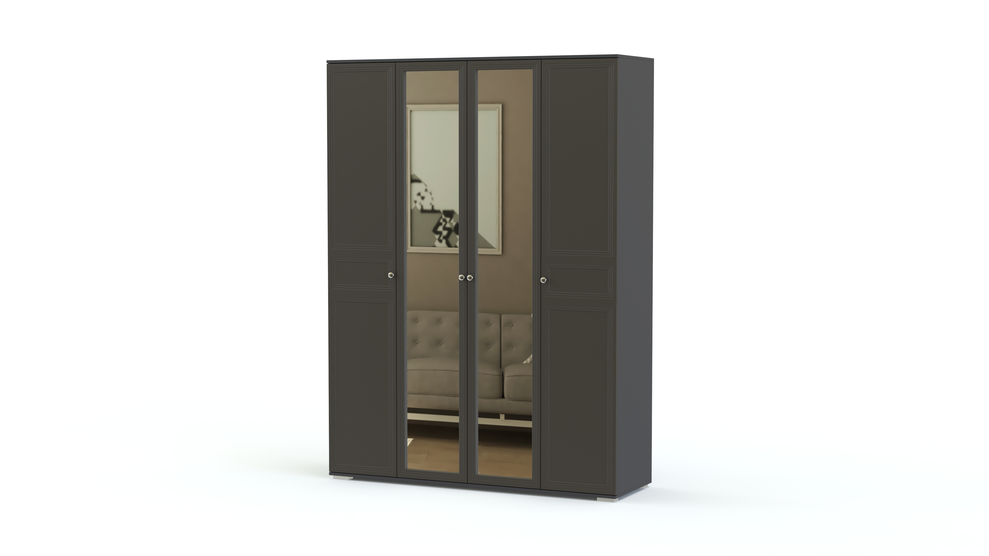 Эффектная женственная модель смотрится особенно выигрышно за счет светлой расцветки, оригинальной фурнитуры и сочетания в оформлении фасадов различных материалов. В комплекте роскошная двуспальная кровать с мягкой, изящной формы спинкой, прикроватная тумба, вместительный распашной шкаф с зеркалами в полный рост и изысканный туалетный столик. Спальня Карина 1 BMS станет отличным выбором для классического интерьера, подчеркнув все его достоинства.