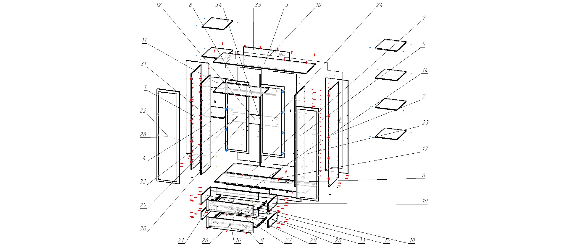 Габариты шкафа: длина 1600, высота 2150, глубина 500;