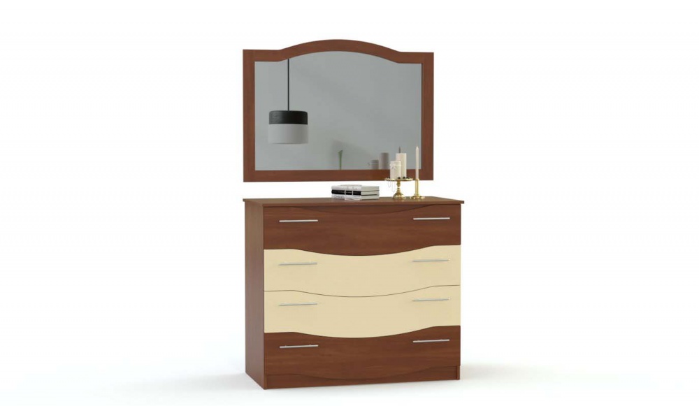 Спальня Техно 2 BMS привлекает сочетанием практичности и элегантного современного дизайна, позволяя создать комфортный и по-настоящему уютный интерьер. Модульная композиция включает в себя кровать с фигурным изголовьем, декорированным вставкой в экокоже с каретной стяжкой, прикроватные тумбы, бельевой комод, дополненный навесным зеркалом в раме, и комбинированный шкаф с отделением-купе и боковыми распашными секциями. Фасады в контрастных древесных тонах декорированы волнообразными мотивами. Купить спальню Техно 2 BMS вы сможете в нашем интернет-магазине.