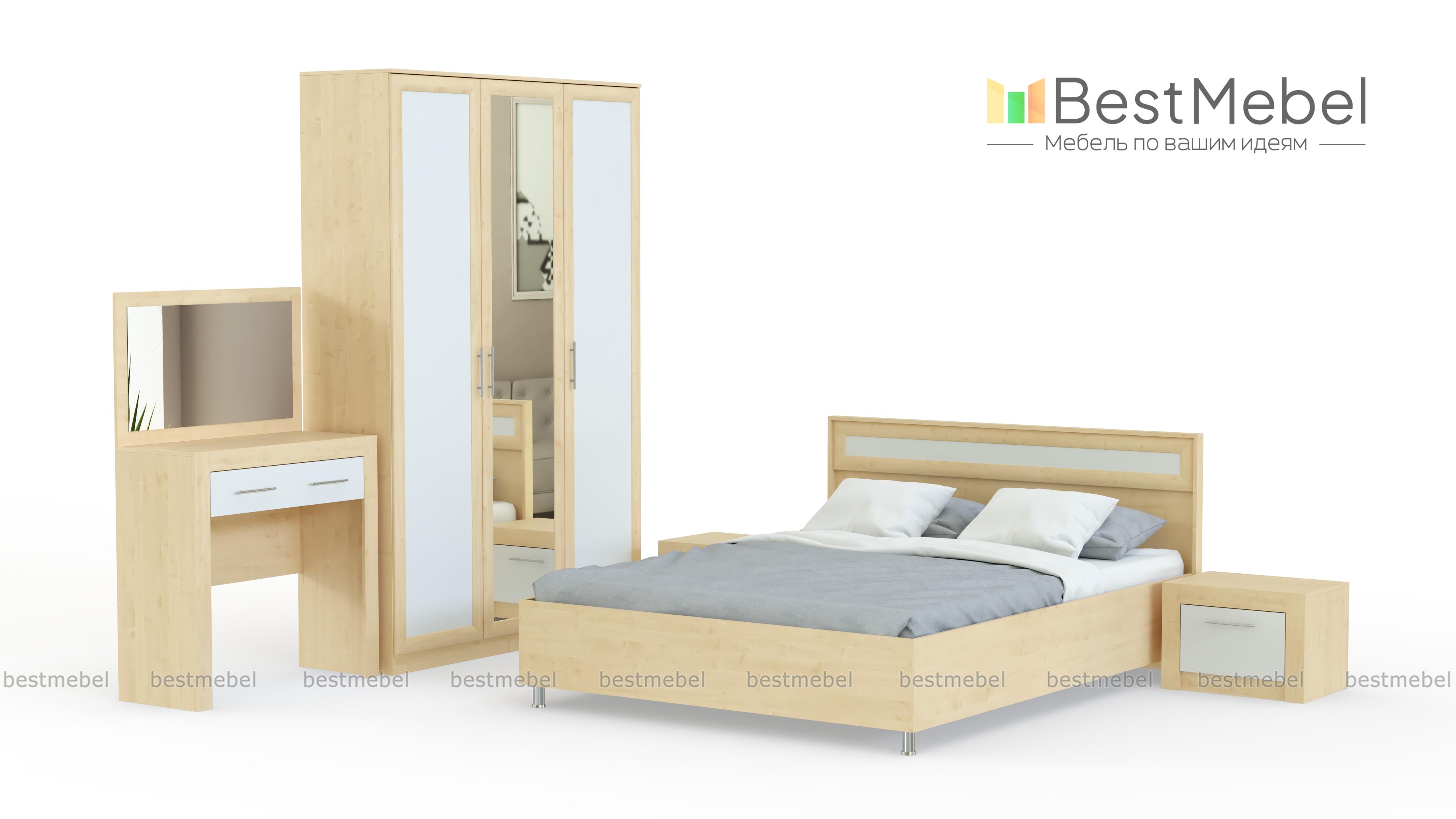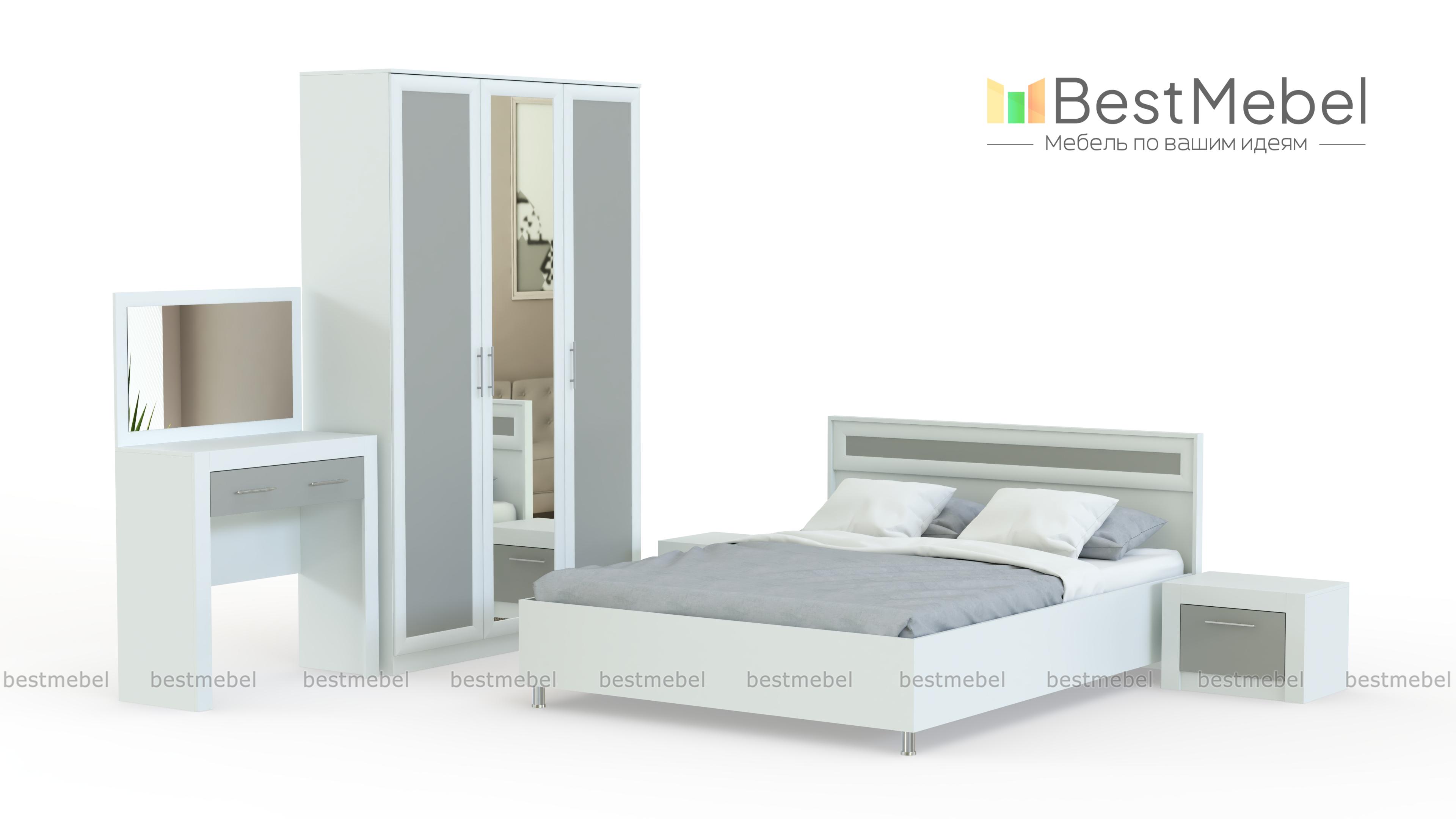 Спальня Токио 2 BMS таит в своём оформлении изысканный утончённый вкус. Вся мебель комплекта не только практична, но и декоративна. Она украсит любую комнату, наполнит её светом и уютом. Серия «Токио» характеризуется полноценными комплектами. Поэтому здесь мы можем увидеть не только роскошную кровать с тумбочками, но и стильный шкаф, удобный туалетный столик и многофункциональный стол напротив кровати. Зеркальная панель, вставки нежного цвета эффектно преображают спальню и делают интерьер респектабельным. Купить спальню Токио 2 BMS Вы сможете в нашем магазине и по низкой цене.