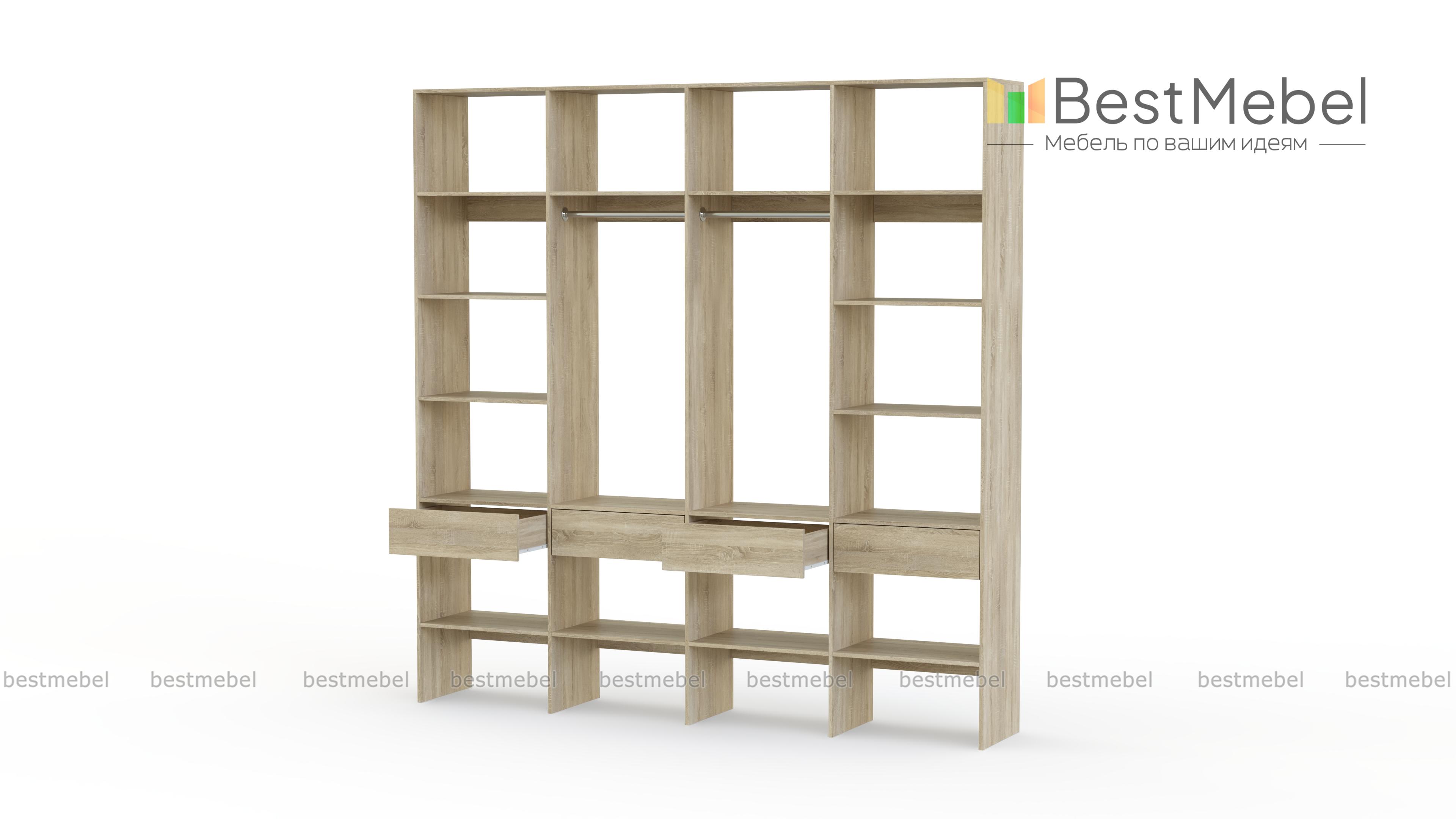 Стеллаж для одежды Мирта 60 BMS поможет вам с организацией хранения гардероба и бытовых вещей. Одежда, текстиль для дома, сезонные аксессуары и обувь будут всегда на виду и под рукой благодаря продуманной конструкции. Четырехсекционная модель оборудована двумя штангами в центре, расположенными по периметру полками и рядом из четырех выдвижных ящиков. Купить стеллаж для одежды Мирта 60 BMS в оттенках нашего каталога и любом удобном размере вы сможете на сайте интернет-магазина.