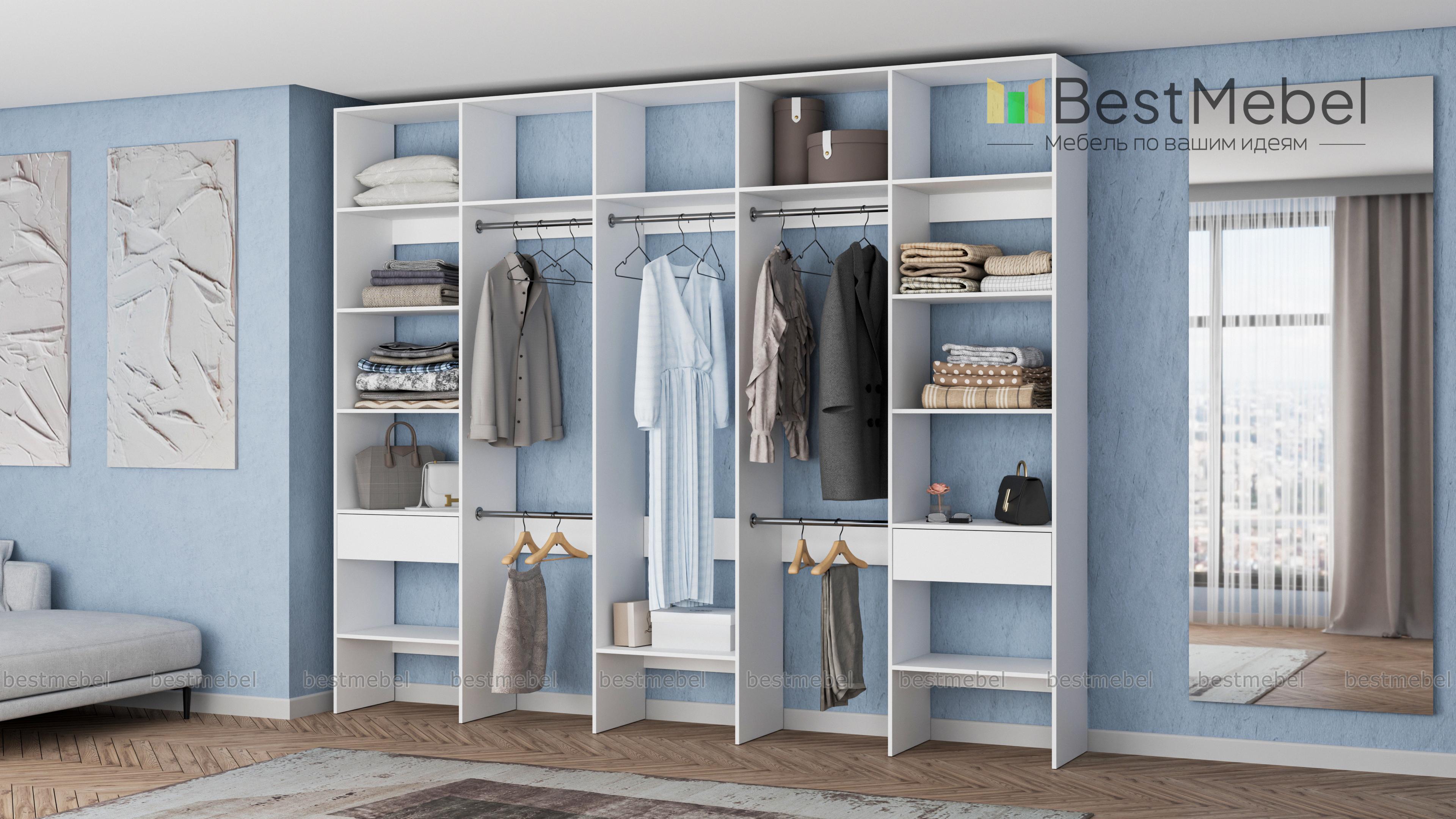 Стеллаж для одежды Мирта 70 BMS создаст комфортное пространство для хранения вашего гардероба. Открытая конструкция в базовом светлом оттенке сочетает в себе отличную вместительность и внешнюю легкость. Наличие штанг на разных уровнях, выдвижных ящиков и целой системы полок позволит вам разделить одежду, обувь и аксессуары по сезонам и категориям. Купить стеллаж для одежды Мирта 70 BMS приглашаем в наш интернет-магазин, подобрав подходящие именно вам цвета и размеры.