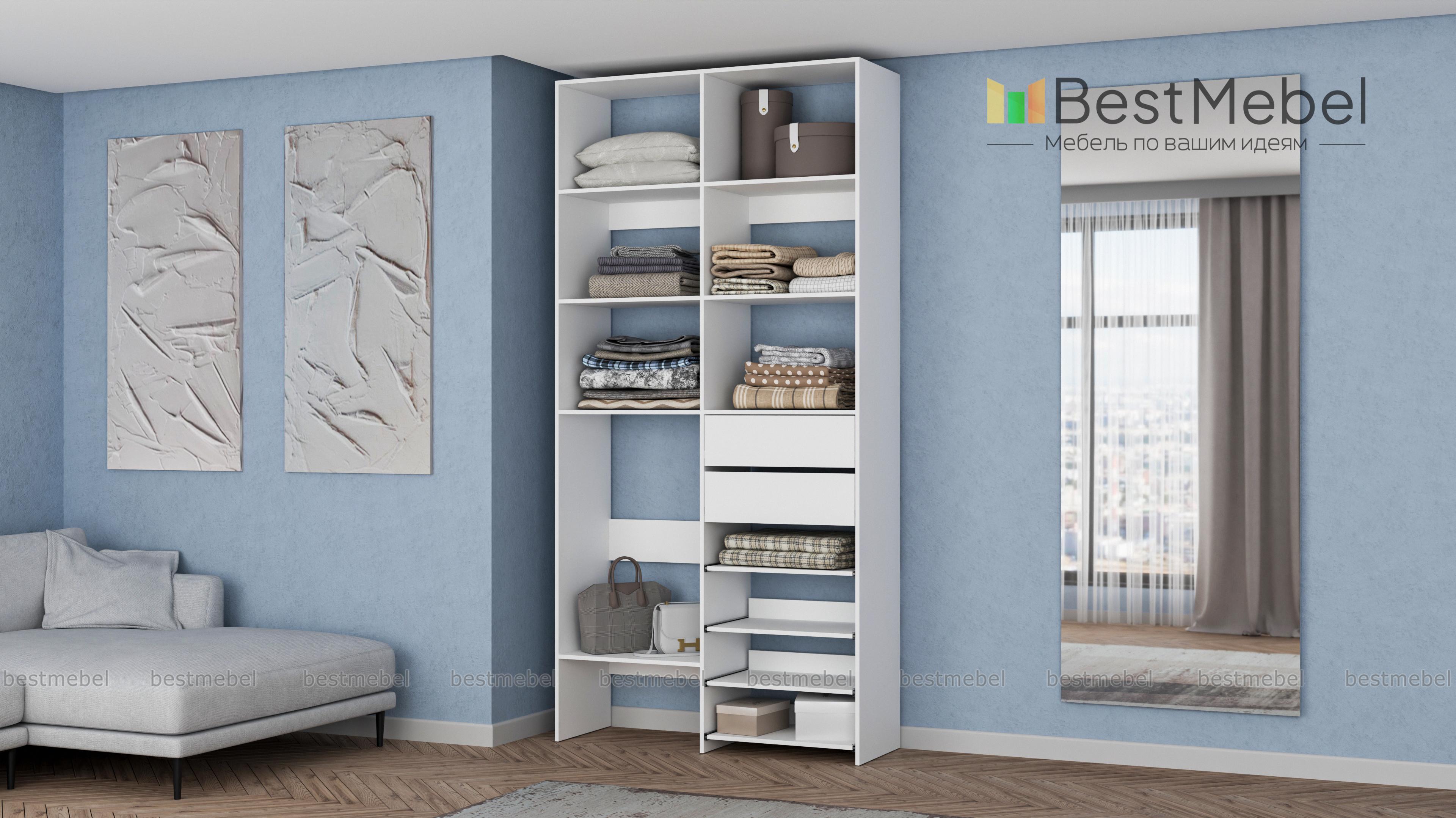 Стеллаж для одежды Мирта 86 BMS поможет вам легко избавиться от беспорядка. Секции разных размеров, два выдвижных ящика и четыре полки на направляющих прекрасно подойдут для хранения сложенной одежды, мелкого трикотажа, корзин и коробок с вещами. Благодаря скромным габаритам стеллаж легко поставить в нишу, разместить в маленькой прихожей или гардеробной. Купить стеллаж для одежды Мирта 86 BMS с выбором цвета и размеров приглашаем в наш интернет-магазин.