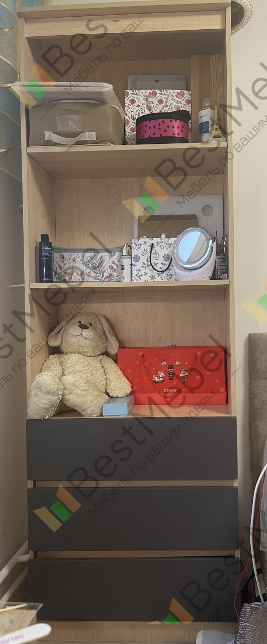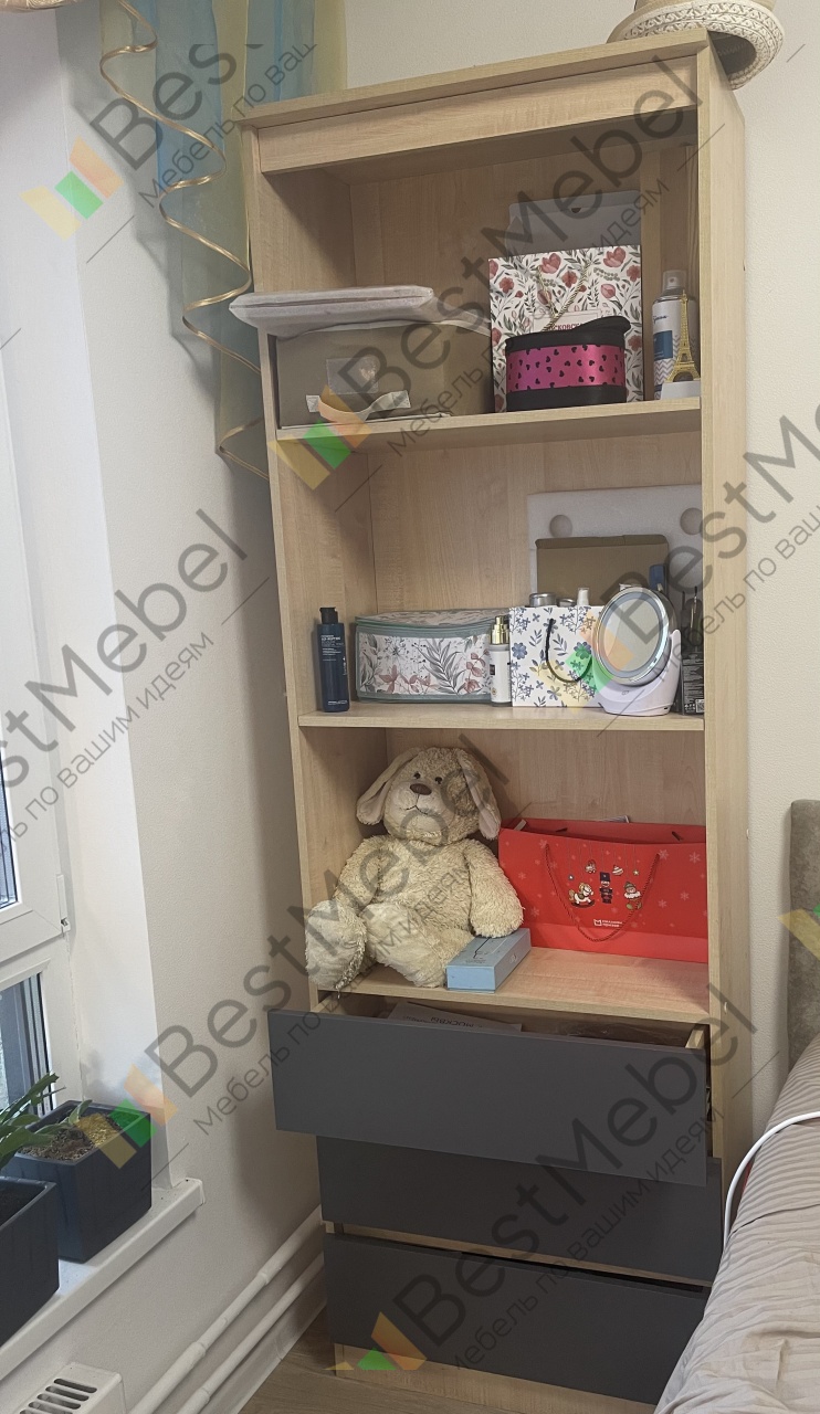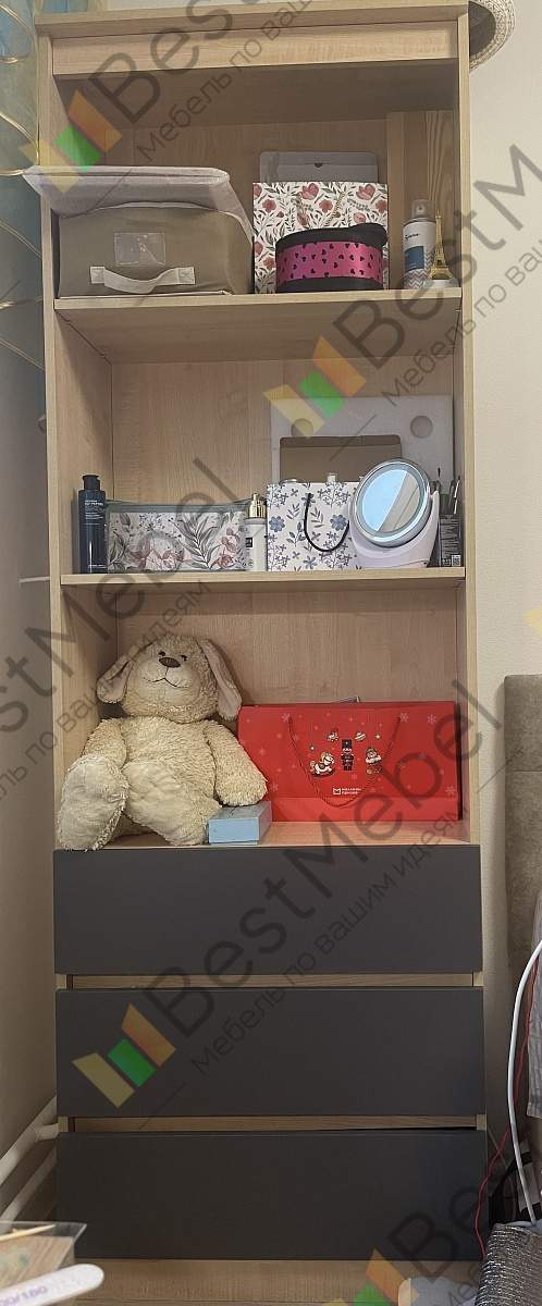Заказ 00000183016Отличный стеллаж! Приехал хорошо упакован, без сколов и царапин. Собрал за час, схема понятная, ничего сложного не представляет. Пропилы все ровные, отверстия соответствуют и все правильно расположены. Огромный плюс, что можно выбрать как размеры, вплоть до миллиметра, так и цвет. Это вторая покупка в данной компании и они определенно радуют. Сделали бы еще доставку за МКАД бесплатной, а то Москва уже давно за его пределы вышла :)