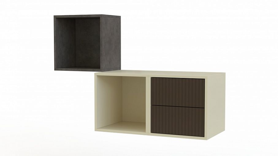 Стеллаж Мелисса 14 BMS состоит из трех функциональных модулей, выполненных в едином стиле. Два открытых навесных куба и один оборудованный выдвижными ящиками имеют практичную навесную конструкцию, позволяющую сэкономить полезную площадь комнаты. Фактурные поверхности эффектно сочетаются с гладкими, а трендовые оттенки, имитирующие камень, - с нейтральными. Купить стеллаж Мелисса 14 BMS для гостиной, спальни или прихожей вы сможете недорого в нашем интернет-магазине.