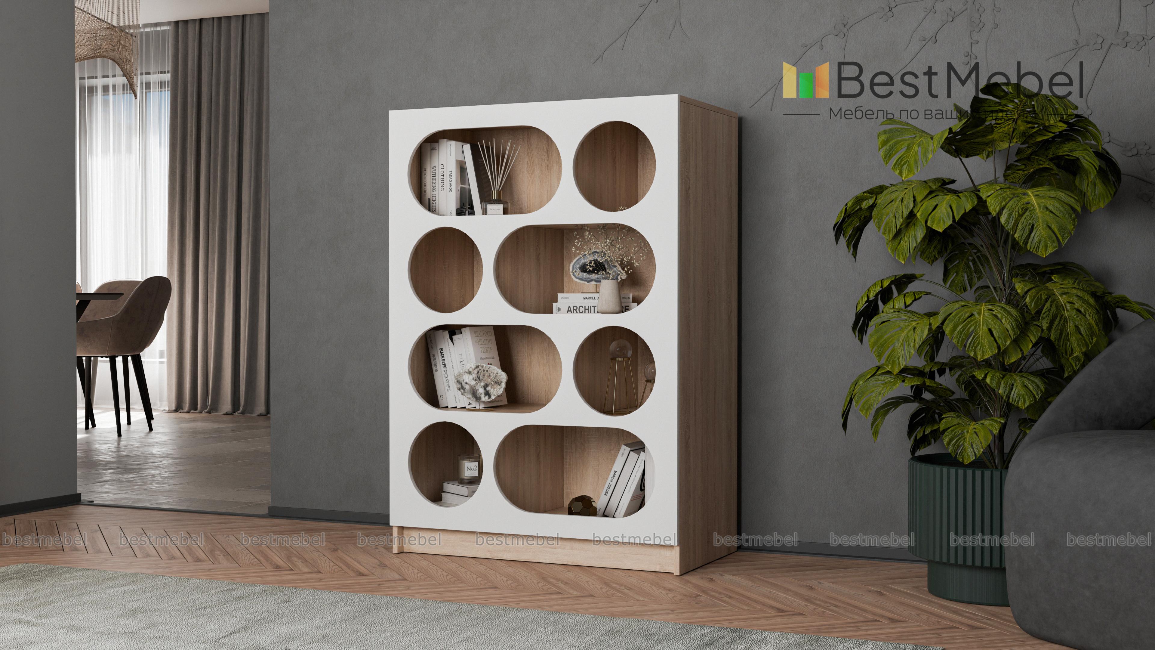Стеллаж Руди 3 BMS может хранить самые разные предметы и интерьерные украшения: от детских игрушек до предметов коллекции. Полки широкого стеллажа разделены вертикальными перегородками и закрыты эффектным фасадом контрастного цвета. Благодаря овальным и круглым вырезам вещи необычно смотрятся и всегда находятся в удобном доступе. Купить стеллаж Руди 3 BMS, изготовленный в любых оттенках из нашего каталога на выбор, вы сможете на сайте интернет-магазина.