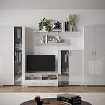 Гостиная FlashNika №18 BMS отличается практичной модульной конструкцией, благодаря которой вы сможете легко вписать отдельные элементы в интерьер, подчеркнув все его достоинства. В комплекте двухстворчатый шкаф для одежды, два шкафчика с витринами, тумба под ТВ и навесные открытые полки. Фасады – роскошный белый глянец с горизонтальной фрезеровкой. Купить гостиную FlashNika №18 BMS, подобрав оптимальные параметры, вы сможете по лучшей цене в нашем интернет-магазине.