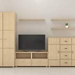 Гостиная Легенда-11 BMS гармонично объединила современную функциональность и декоративность классического стиля. Эффектная модульная конструкция включает в себя все необходимое для размещения плечиков с одеждой, аппаратуры, интерьерных украшений и множества мелочей. В комплекте платяной двухдверный шкаф, низкая тумба под ТВ, высокая комбинированная тумба и открытые навесные полки. Особенность гостиной – фасады древесных тонов с объемным рисунком и изящной фурнитурой под бронзу. Купить гостиную Легенда-11 BMS, подобрав оптимальное цветовое решение, приглашаем в наш интернет-магазин.