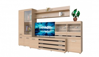 Заказ 00000548342. Заказали гостиную с основным цветом: "Береза", и дополнительным - "молочный дуб". Изменили немного строение комода - от этого цена стенки не изменилась, что очень порадовало.Нам очень понравилась стенка, хорошо смотрится в гостиной, есть место и для сервиза, и для книжек. Рекомендуем! :)