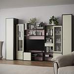 Стенка Альбера комплектация 2 BMS ‒ современное решение для современных людей. Идеально продуманная функциональность комплектации не пошла в ущерб великолепному дизайнерскому решению. Стенка содержит все необходимое для размещения достаточного количества вещей: 2 закрытых высоких пенала; 2 пенала пониже со стеклянными дверцами, дополненные тумбами и 2 выдвижными ящиками; секцию с открытыми полками; ниши для ТВ прочей техники. Заказать стенку Альбера комплектация 2 BMS можно в другом цветовом решении, подобрав его в нашей палитре.