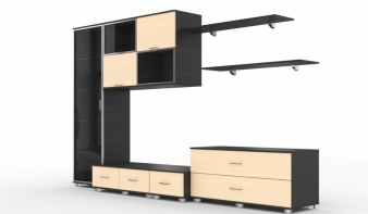 Очень оригинальная и стильная модель. Необычная конфигурация и разноуровневое расположение полок делают ее привлекательной и суперсовременной. Стенка Фиджи-4 предназначена для размещения домашней теле- и видео-аппаратуры, имеет вместительный книжный шкаф и закрытую тумбу для личных бумаг, дисков и т.д. Модель стоит на хромированных ножках, а сочетание цветов выглядит очень интересно. Купить такую мебель можно в квартиру-студию, гостиную, современный офис или кабинет.