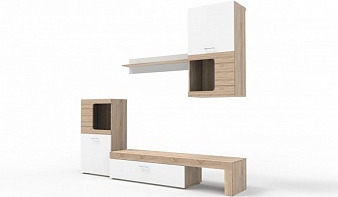 Стенка Ikar BMS отличается компактностью, лаконичным современным дизайном и демократичной ценой. Выполненная в популярном сочетании светлых древесных тонов с белыми фасадами, модель гармонично впишется в современные интерьеры – скандинавский, лофт, минимализм. Визуально легкая, асимметричная конструкция представляет собой сочетание тумбы под ТВ, оригинального комбинированного с закрытыми секциями стеллажа и навесной полки. Купить стенку Ikar BMS недорого вы сможете в нашем интернет-магазине.