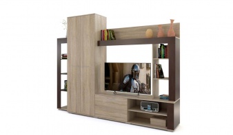 Стенка Луиджи 9 BMS – это современная горка, лаконичная и оборудованная удобной системой хранения. Разноуровневая композиция, выполненная в светлых древесных тонах, объединила центральную секцию с нишей под ТВ, тумбой и открытыми полками для книг и интерьерных украшений, платяной шкаф и шкаф-витрину. Зеркальная вставка на фасаде шкафа декорирована геометричным пескоструйным орнаментом. Купить стенку Луиджи 9 BMS для небольшой гостиной вы сможете в нашем интернет-магазине.