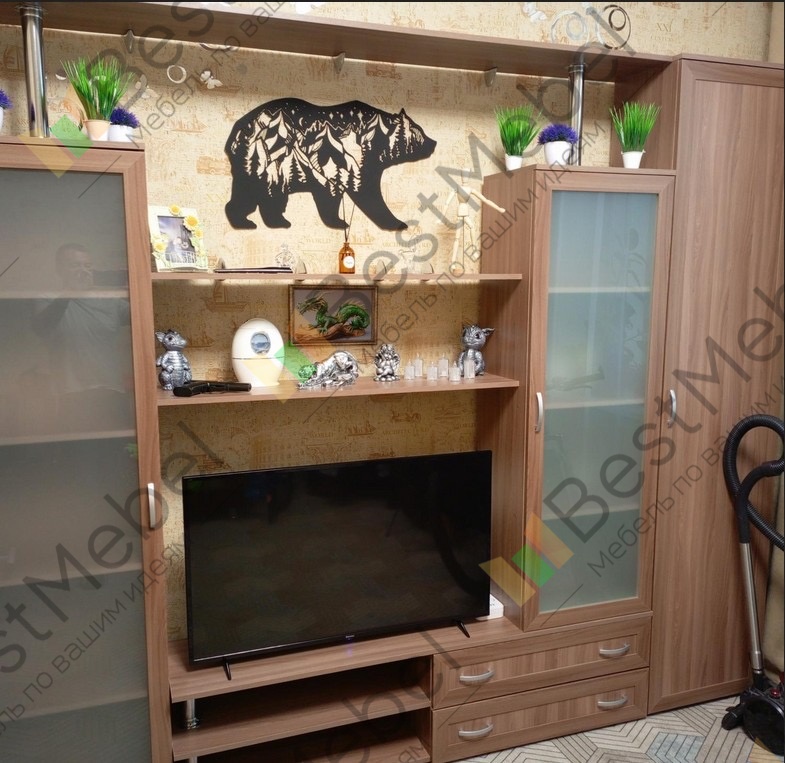 Стенка супер красивая, понравилась. Рекомендую. Доставка быстрая. Всё на месте. Минусов нет.