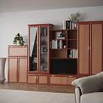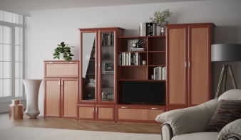 Отличный классический вариант для Вашей гостиной. Стенка Полонез включает в себя 3 распашных шкафа, один из которых со стеклянными дверцами. 4 малых отдела для размещения одежды, постельного белья, бумаг и прочих личных предметов. Также имеется ниша для телевизора и несколько полок для домашней библиотеки. Заказать такую модель можно у нас на сайте за считаные минуты.