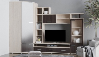 Стенка Пустынный пляж BMS дополнит удобной системой хранения небольшую гостиную или студию. Компактная благодаря угловой конструкции, разноуровневая горка выполнена в контрастных древесных тонах и отличается функциональным современным дизайном. В комплекте вместительный трапециевидный шкаф для одежды, тумба под ТВ, витрина, книжный мини-стеллаж и антресольная полка. Купить стенку Пустынный пляж BMS, стильную и надежную в эксплуатации, приглашаем недорого в наш интернет-магазин.