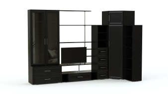 Стенка в гостиную Лада 4 BMS предназначена для меблировки просторных помещений и отличается респектабельным дизайном в современном классическом стиле. Угловая композиция с рамочными фасадами в элегантном темном венге включает в себя распашной шкаф для одежды, комбинированный книжный шкаф, бельевой пенал, секцию с тумбой под ТВ и антресольной полкой и торцевые радиусные стеллажи. Дополнят стенку широкий комод и журнальный столик. Купить стенку в гостиную Лада 4 BMS и организовать комфортное пространство вам поможет наш интернет-магазин.