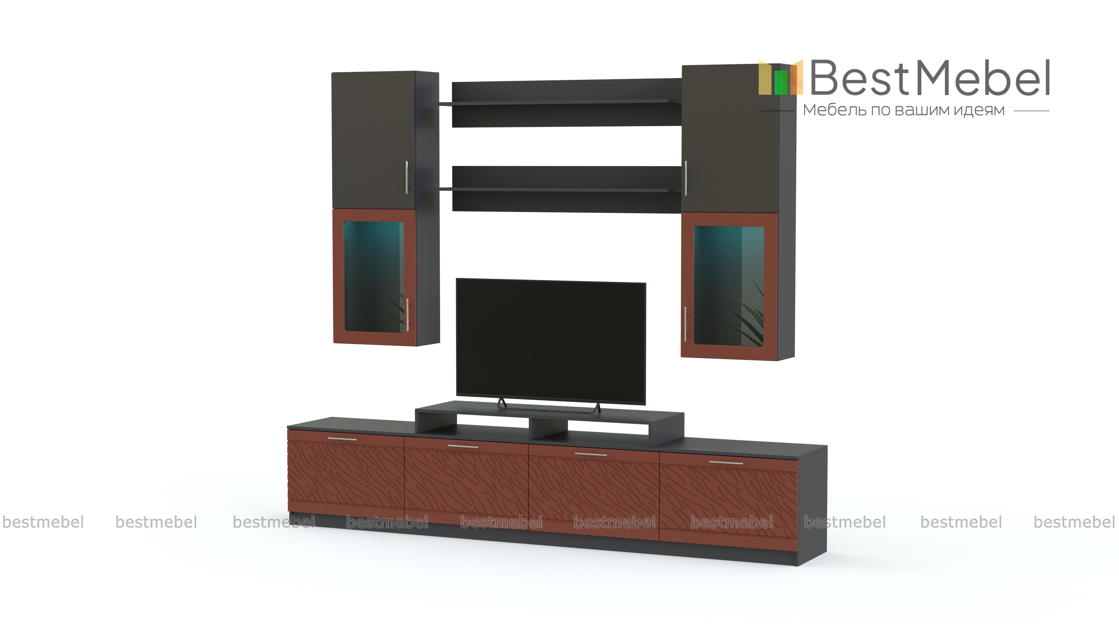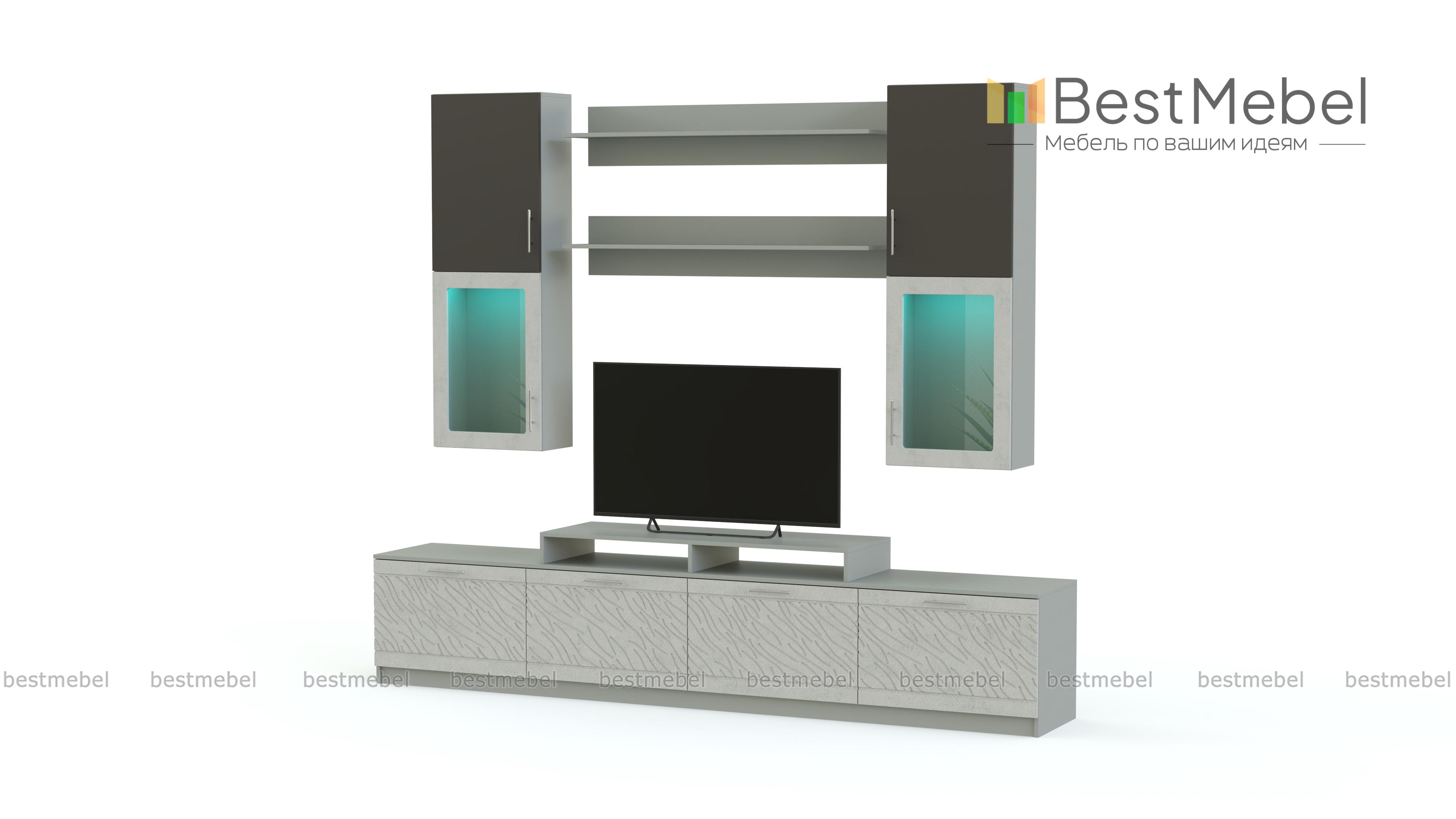 Стенка Вельвет 25 BMS из популярной серии отличается практичной модульной конструкцией и ярким современным дизайном. Напольные и навесные элементы подчеркнут достоинства как просторного, так и малогабаритного помещения и легко впишутся в любую планировку. В комплект входят низкая широкая тумба с подставкой для ТВ, две открытые полки и два настенных шкафа с витринными отделениями. Фасады сочетают однотонные и контрастные цветные поверхности с рельефным рисунком. Купить стенку Вельвет 25 BMS приглашаем в наш интернет-магазин по доступной цене.
