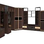 Угловой шкаф-купе с местом под ТВ № 205 BMS решит проблему организации пространства в гостиной. Прекрасный выбор для просторного помещения, крупногабаритная угловая модель занимает всю стену и по максимуму использует возможности планировки. В комплекте два шкафа-купе, незаменимых для хранения гардероба, и центральная секция с тумбой, витринами, антресольными полками и нишей под ТВ. Глубокие древесные оттенки сочетаются с глянцевыми вставками из окрашенного стекла. Купить угловой шкаф-купе с местом под ТВ № 205 BMS вы сможете в нашем интернет-магазине.