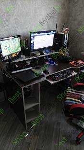 Заказ № 144616, доставили вовремя, все разметки как положено на месте, в сборке проблем не возникло, очень вместительный стол, под два монитора - самое то, есть впадина в которую любит залезать и спать кот :)