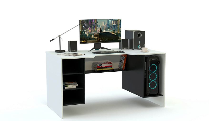 Игровой стол Харпер-3 BMS, выполненный в контрастном сочетании черного и белого, подходит для игры, работы или учебы. Просторная столешница имеет трапециевидный вырез для удобного положения тела и выемку под провода. Открытые секции под столешницей позволят компактно разместить рабочие материалы и системный блок, внешне не утяжеляя конструкцию. Купить игровой стол Харпер-3 BMS с возможностью изготовления по индивидуальным размерам приглашаем в наш интернет-магазин.