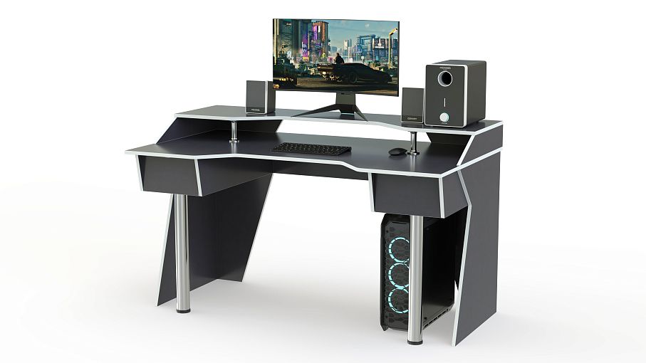 Игровой стол Маршал 4 BMS отличается ультрасовременным дизайном и выполнен в нейтральном черном цвете с контрастной белой кромкой. Устойчивая благодаря комбинированным опорам, модель сочетает стильную геометрию и хорошую эргономику. Столешница с трапециевидным вырезом переднего края дополнена надстройкой под монитор и периферийные устройства, а также двумя боковыми выдвижными ящиками для мелочей. Купить игровой стол Маршал 4 BMS приглашаем в наш интернет-магазин с выбором фурнитуры и цвета по каталогу.