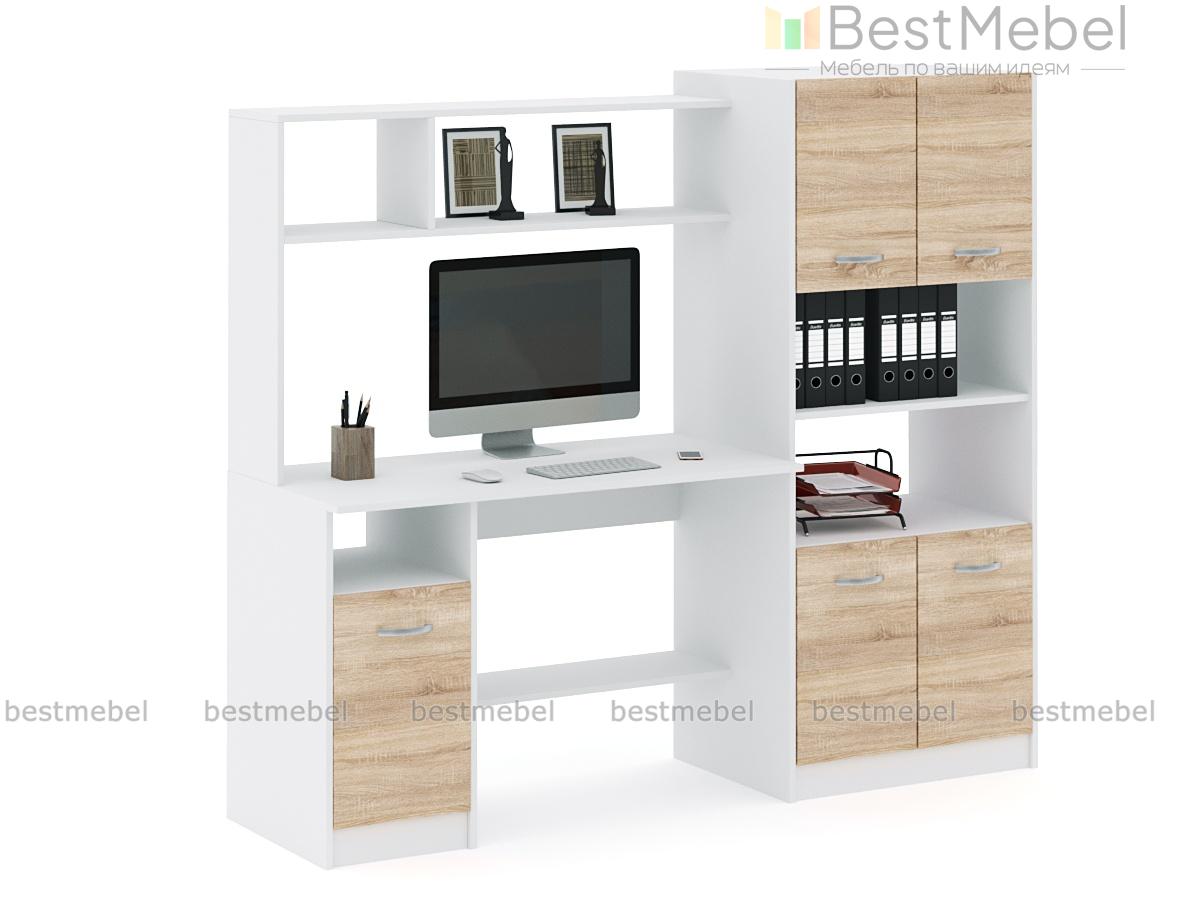 Компьютерный стол Август-10 BMS станет практичным дополнением интерьера современного офиса. Модель, оборудованная продуманной системой хранения, сделает рабочий процесс максимально комфортным. Просторную столешницу дополняют распашная тумба, нижняя полочка и высокая надстройка. Для папок с документами, книг и оргтехники предусмотрен вместительный стеллаж, комбинированный с распашными отделениями. Выполненный в сочетании универсального белого и древесных тонов на выбор, стол гармонично впишется в меблировку. Купить компьютерный стол Август-10 BMS приглашаем в наш интернет-магазин.