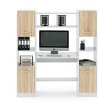 Компьютерный стол Август-5 BMS, оборудованный продуманной системой хранения, поможет организовать комфортный рабочий процесс. Удобная для работы за компьютером столешница дополнена нижней полкой и высокой надстройкой, а по бокам располагаются стеллажи, комбинированные с распашными отделениями. Универсальное сочетание белого корпуса и фасадов древесных оттенков на выбор уместно и в офисном, и в домашнем интерьере. Купить компьютерный стол Август-5 BMS приглашаем недорого в наш интернет-магазин.