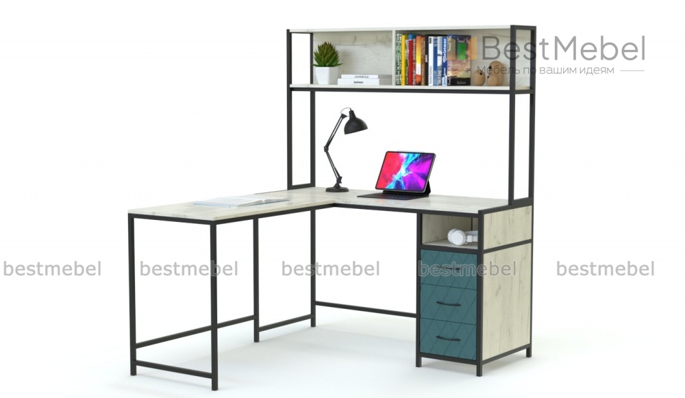 Компьютерный стол Флора 12 BMS представляет собой оригинальное решение для меблировки помещения в стиле индастриал или лофт. Композиция состоит из просторной угловой столешницы, надстройки с широкой открытой полкой и вместительной тумбы в основании, что дает много возможностей для размещения техники, книг и канцелярии. Выдвижные ящики украшены черными ручками-скобами и стильной геометричной фрезеровкой. Купить с возможностью изменения размера и цвета компьютерный стол Флора 12 BMS приглашаем в наш интернет-магазин.