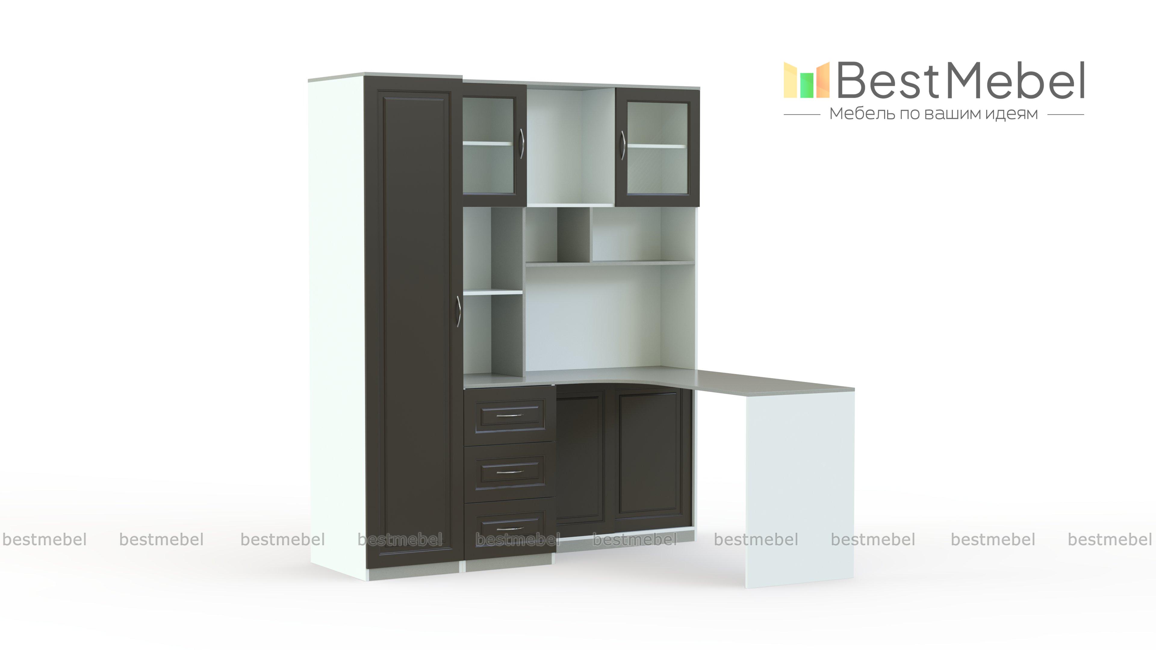 Компьютерный стол Классик 16 BMS дополнен продуманной системой хранения, позволяющей разместить не только все необходимые для учебы или работы материалы, но и одежду или бытовые вещи. Комбинированная модель объединила пенал, книжный шкаф с открытыми и застекленными полками, выдвижными ящиками и отделением-купе и просторную угловую столешницу. Особенно эффектный вид придает композиции сочетание классических белых фасадов с рамочной фрезеровкой и темных акцентов. Купить компьютерный стол Классик 16 BMS вы сможете в нашем интернет-магазине.