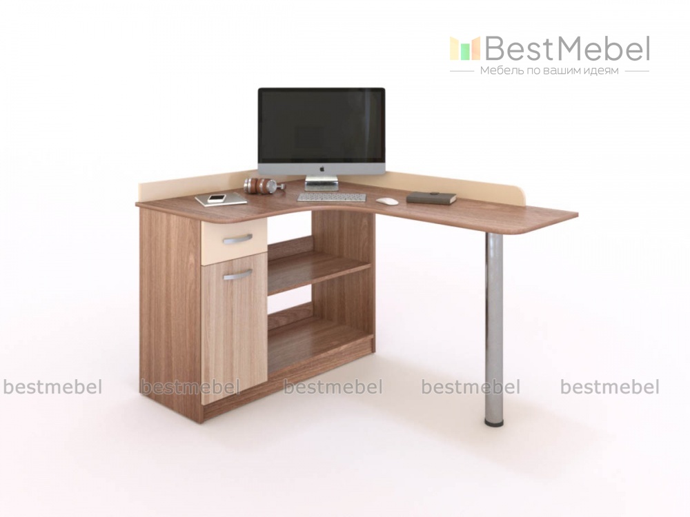 Компьютерный угловой стол Коллаж BMS – простая и функциональная модель для учебы, работы за компьютером и творческих занятий. Угловой стол сэкономит полезную площадь комнаты и компактно разместит под рукой все самое необходимое. Скругленная по краям столешница оборудована защитными бортиками, которые уберегут письменные принадлежности от случайного падения, и дополнена тумбой с выдвижным ящиком для мелочей, распашным отделением и открытыми полками. Купить компьютерный угловой стол Коллаж BMS недорого вы сможете в нашем интернет-магазине.